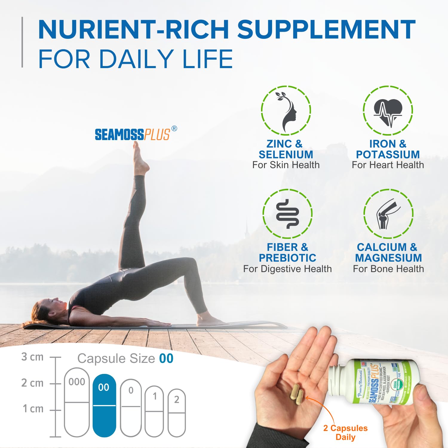- Packed With Everything the Body Needs to Thrive: Our Seamoss Plus blend is full of vitamins and minerals like iodine, zinc, iron, calcium, potassium, and silica, all of which your body uses daily. Irish moss, bladderwrack, and burdock root - three of the most powerful herbal blends, boost your overall health with just 2 capsules per day!