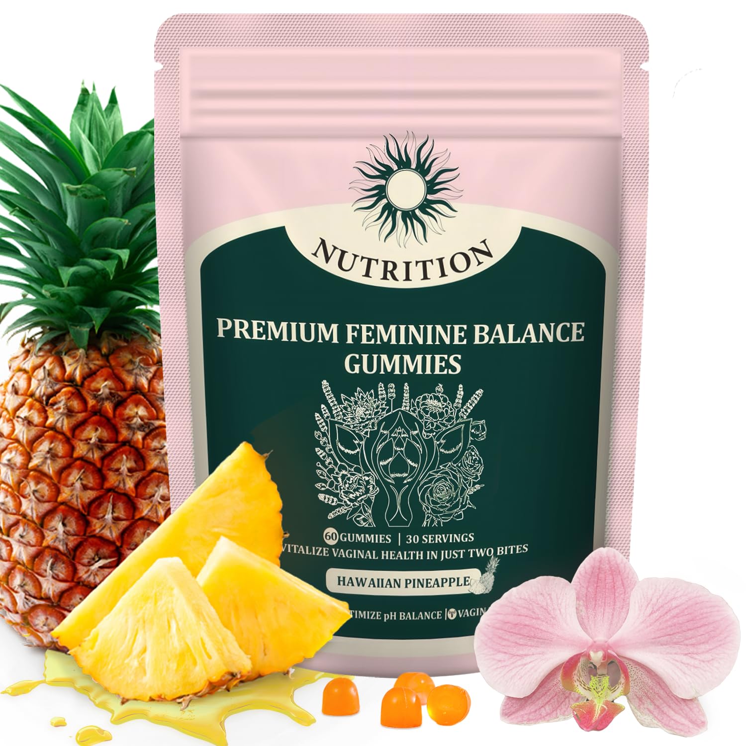 Premium Feminine Balance Gummies for Women - Hawaiian Pineapple pH Balance Gummy Nutrition Natural Vegan Gluten-Free 60 Gummies, 30 Servings