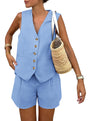 - FEATURES: Womens Vest And Shorts Sets/ Casual Matching Sets For Women/ Button Front Tank Top For Women/ High Waisted Shorts With Pockets/ Sleeveless Two Piece Sets For Women/ V Neck Vest Waistcoat For Women/ Summer outfits For Women/ 2 Piece Shorts Set For Women