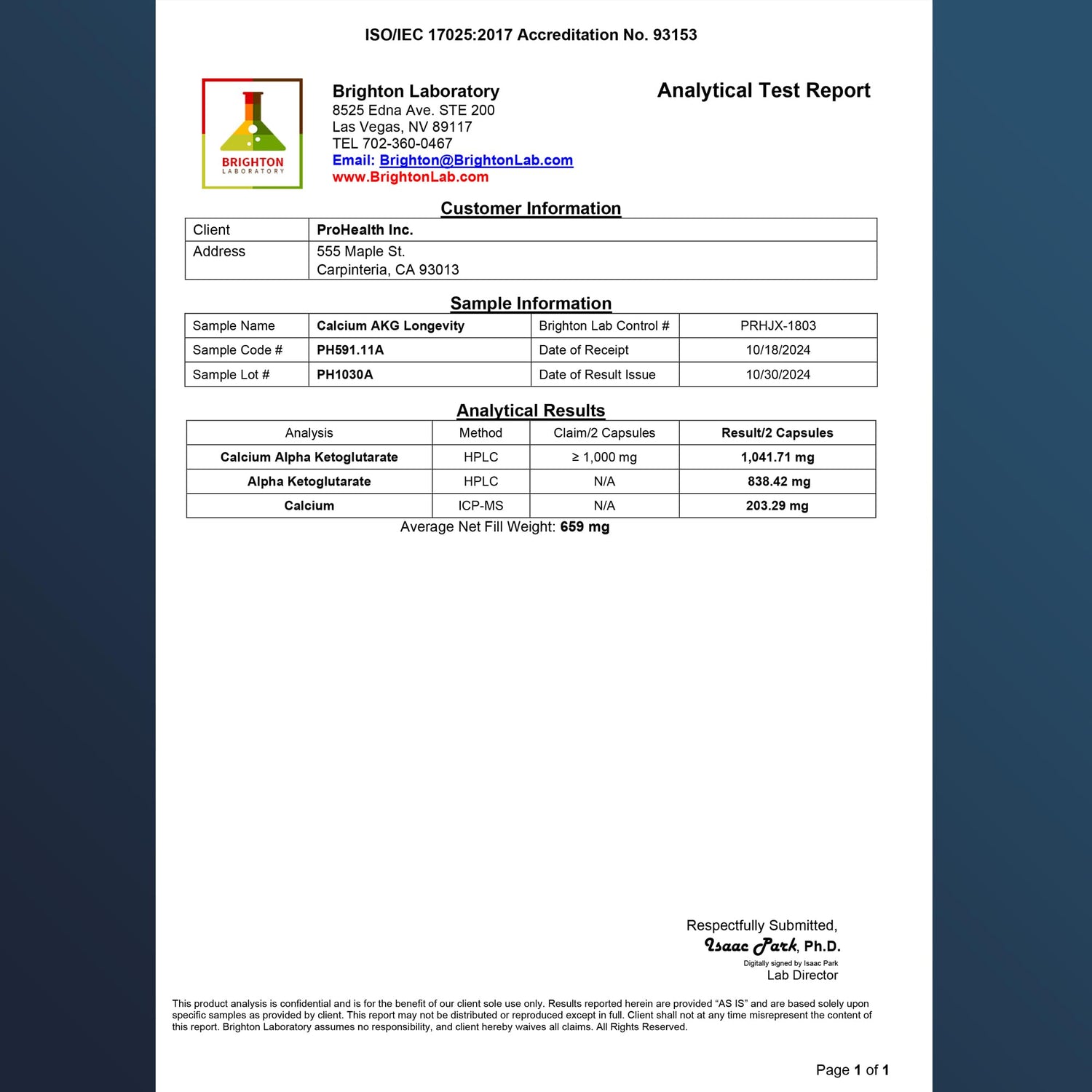 ProHealth, Ca AKG Supplement (Alpha Ketoglutarate) (1,000 mg per 2 Capsule Serving, 60 Capsules). Supports Cellular Energy, Metabolic Function and Healthy Aging Processes (3 Pack)