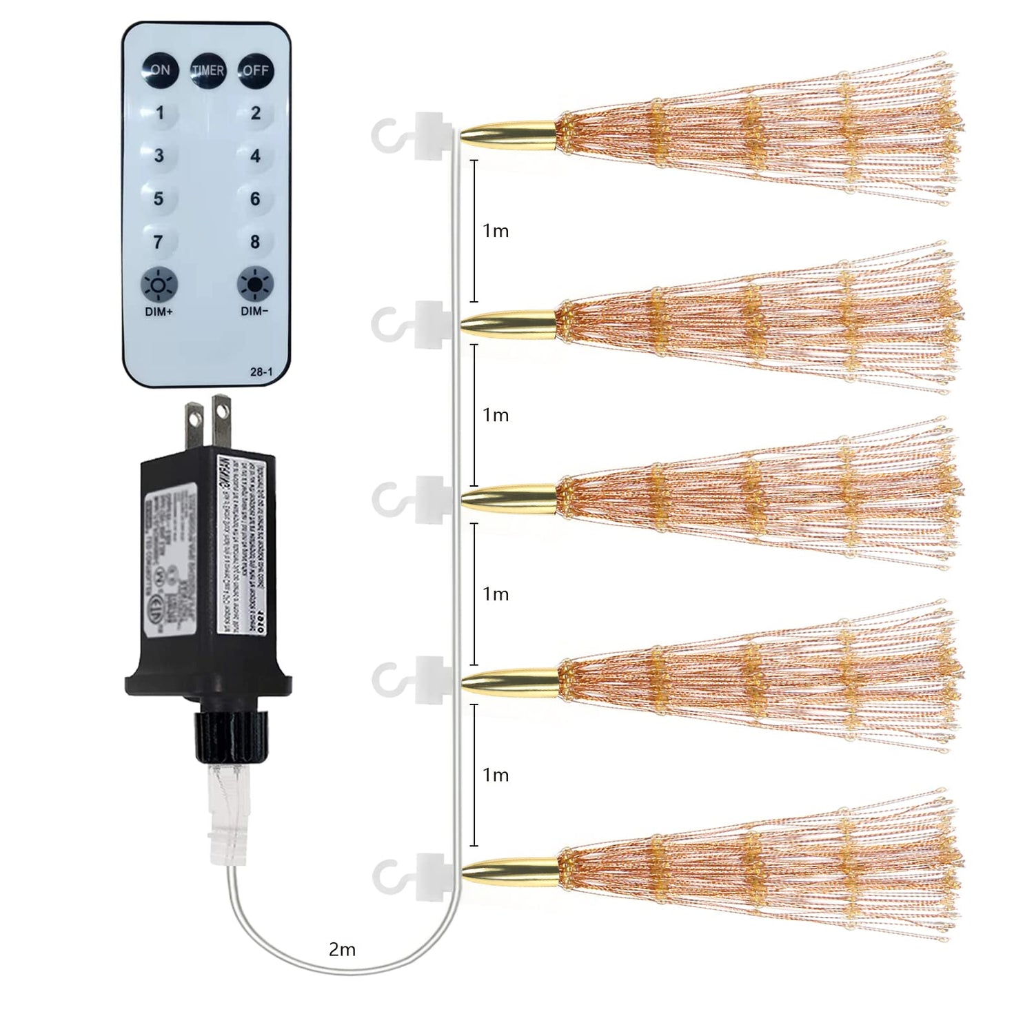 - 【SCOPE OF APPLICATION】The plug-in firework light is connected with the copper wire light string through the spiral port, can be disassembled and charged. Starburst lights can be used in indoor rooms, can decorate your Christmas tree, bedroom, wedding scene, cafe, window, can also be used as night light, outdoor decorative lights, corridor lights. Ideal for festive decorations, such as Christmas, with the effect of fireworks, creating a romantic atmosphere.