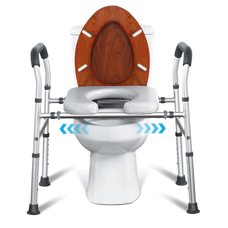 - 【Side Reinforced Crossbar and 400lbs support, More Sturdy】Our toilet seat riser for seniors is made of premium aluminum frame and there is 2 reinforced crossbar on the side, the toilet seat riser with handles can support 400lbs, stable structure and premium material, stable enough and safe enough, make our products more reliable.
