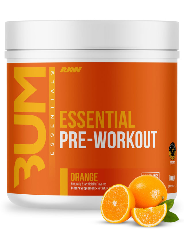 - Orange Essential Pre-Workout: RAW Nutrition’s Essential Pre is a comprehensive pre-workout that’s perfect for all lifters, from beginner to advanced. Whether it’s your first day in the gym or you’re a seasoned veteran, these high-powered ingredients like L-Citrulline and Caffeine work the same. 30 servings, 14.29 oz