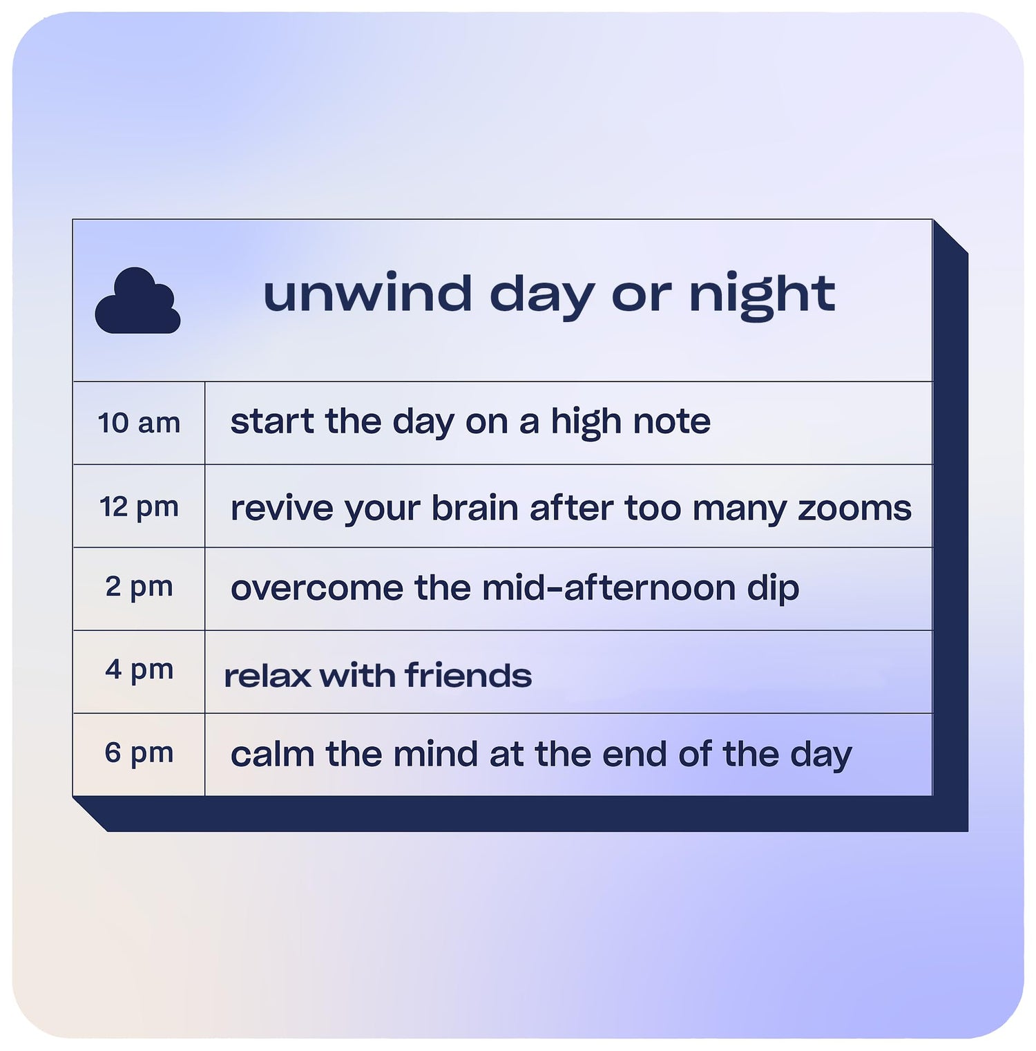 - RELAX AND UNWIND: A magnesium and adaptogen-infused sparkling water to help you unwind.