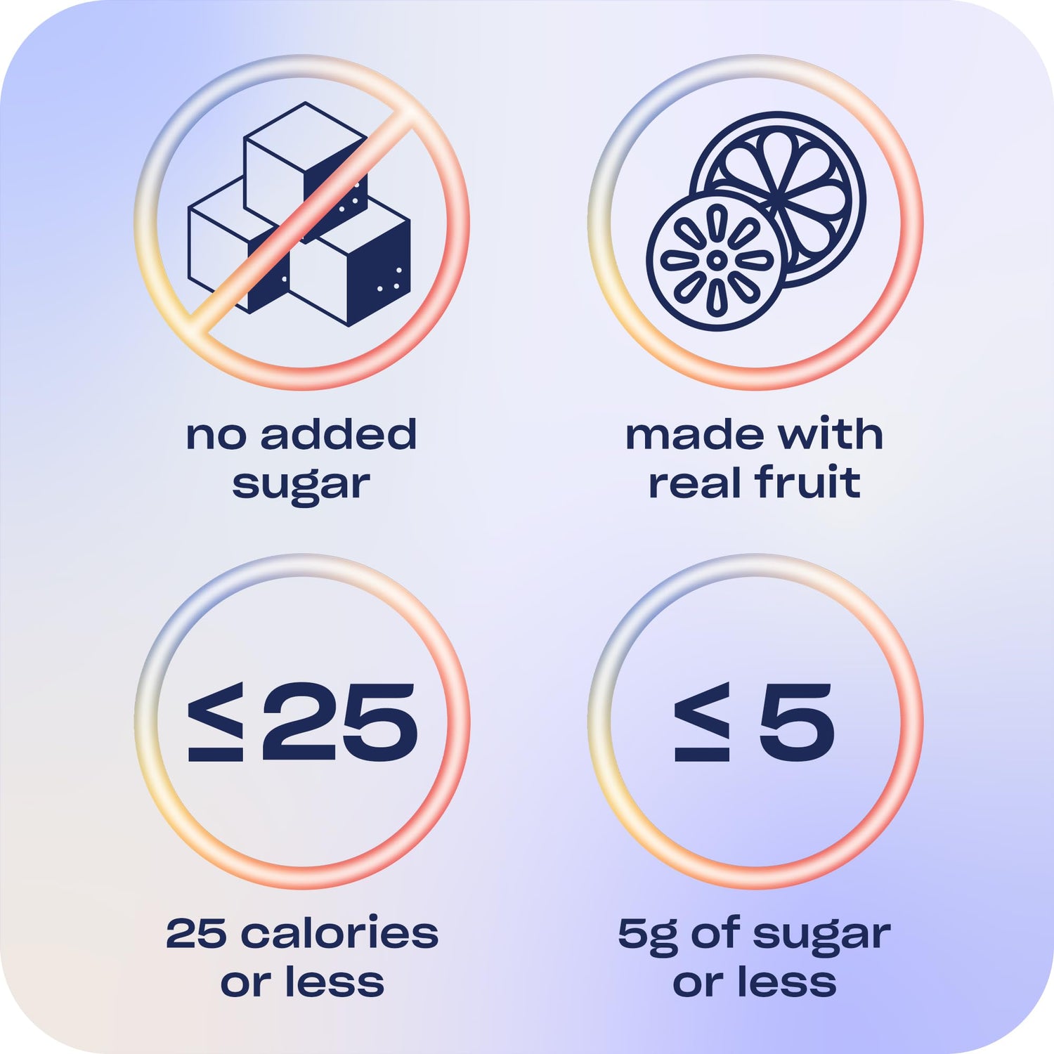 - LOW CAL: Zero added sugar, no fake stuff. only 25 calories and 5g of sugar or less from fruit juice.