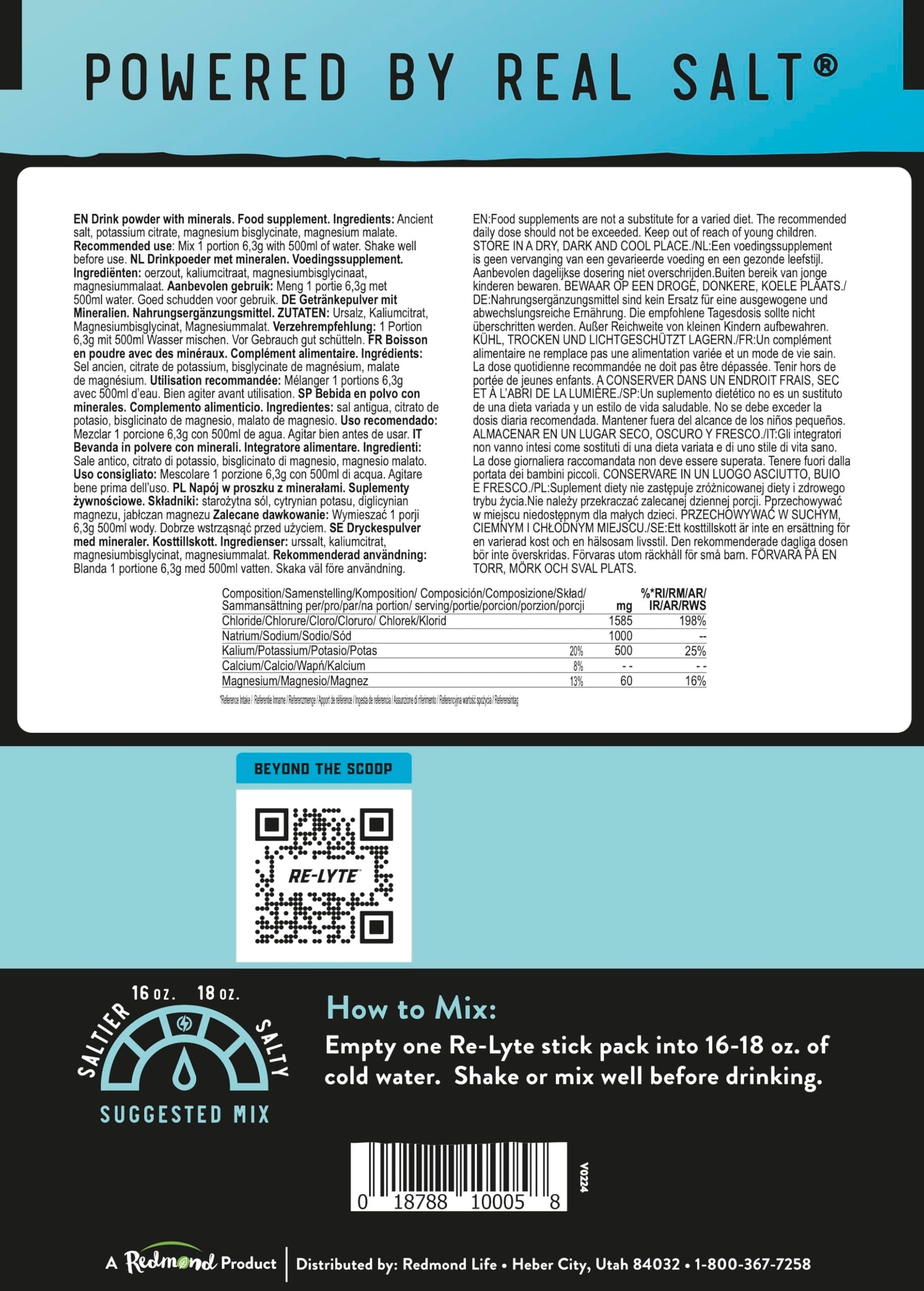 - REAL SALT'S DELICIOUS UNREFINED SEA SALT - Most brands can't use enough sodium to replace what your body loses during the day – because they use refined white salt. Re-Lyte includes Real Salt's delicious taste and 60+ trace minerals.
