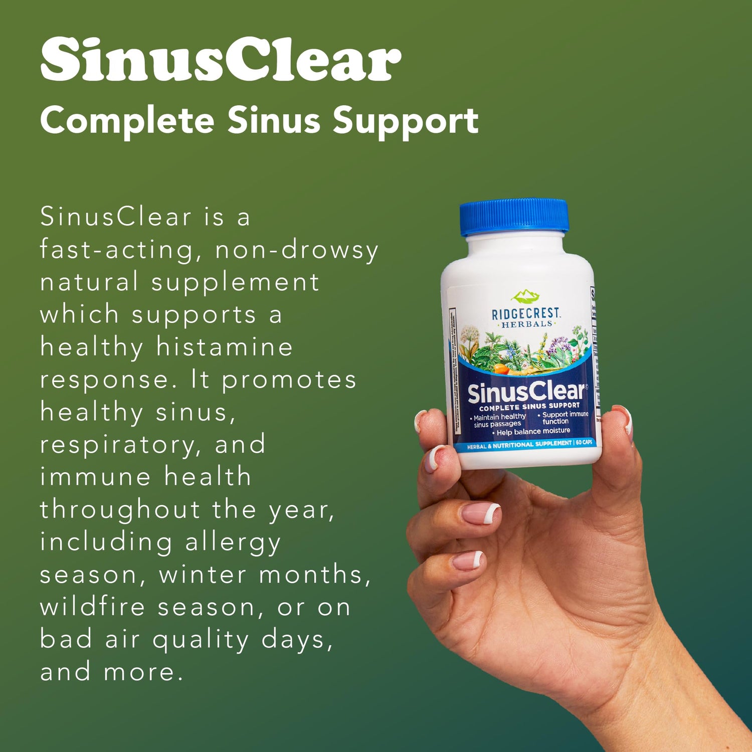 - DESIGNED FOR BOTH SEASONAL AND REGULAR USE: SinusClear is a fast-acting, non-drowsy natural supplement that promotes a healthy nose, eyes, respiratory system, and immune function throughout the year including allergy season, winter months, wildfire season, bad air days (pollution or inversion) or support for a healthy histamine response. Recommended for adults, men, women, or anyone who needs to support their sinus function (i.e. smokers, vapers, lung-sensitive individuals, or athletes).