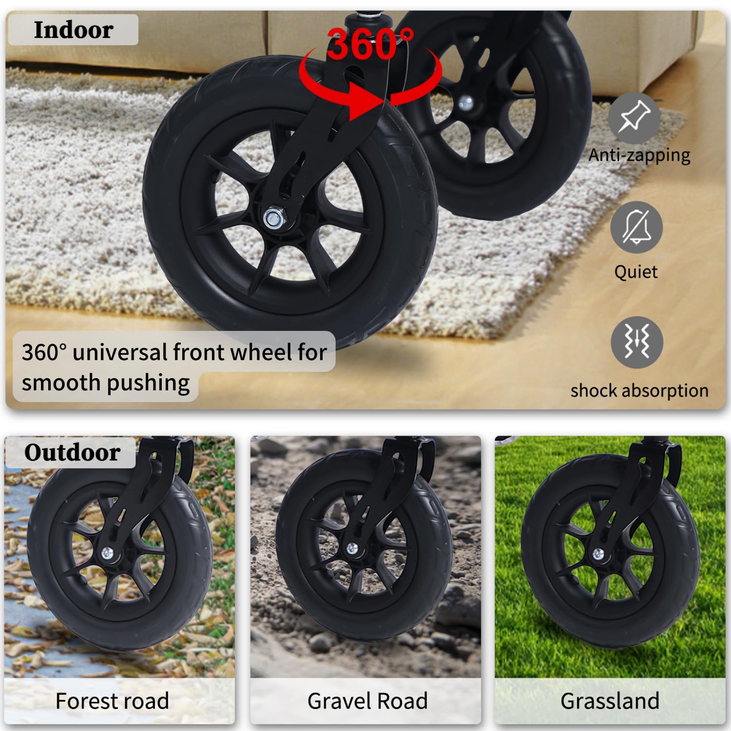 - 2. Upgrade All terrain Wheels-Enhanced Shock Absorption: As an upgrade from the standard 8-inch tire, 10 inch front all-terrain tires provides a larger contact area, significantly boosting stability. It is accompanied by superior shock absorption, resulting in a smoother walking experience that reduces vibrations and impact on the user's body. This is particularly for users who prioritize comfort and joint health.