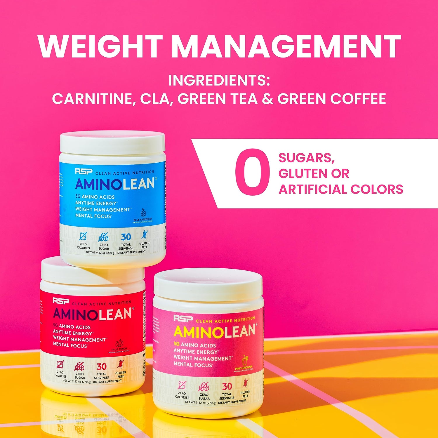 RSP NUTRITION AminoLean Pre Workout Powder, Amino Energy & Weight Management with Vegan BCAA Amino Acids, Natural Caffeine, Preworkout Boost for Men & Women, 30 Serv