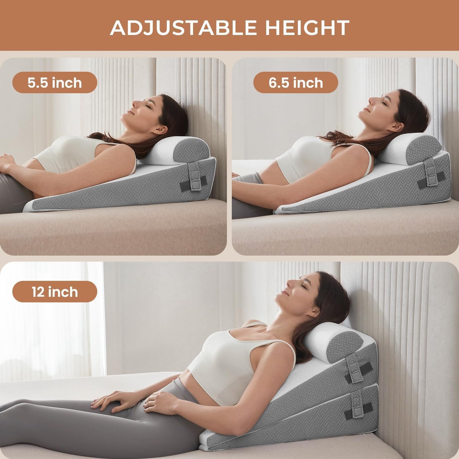- 10-in-1 Adjustable Design: The 3-piece wedge pillow set offers a fully customizable design, allowing you to adjust the height and angle by combining or separating the pieces. Effortlessly meets your different needs like reading, working, or relaxing