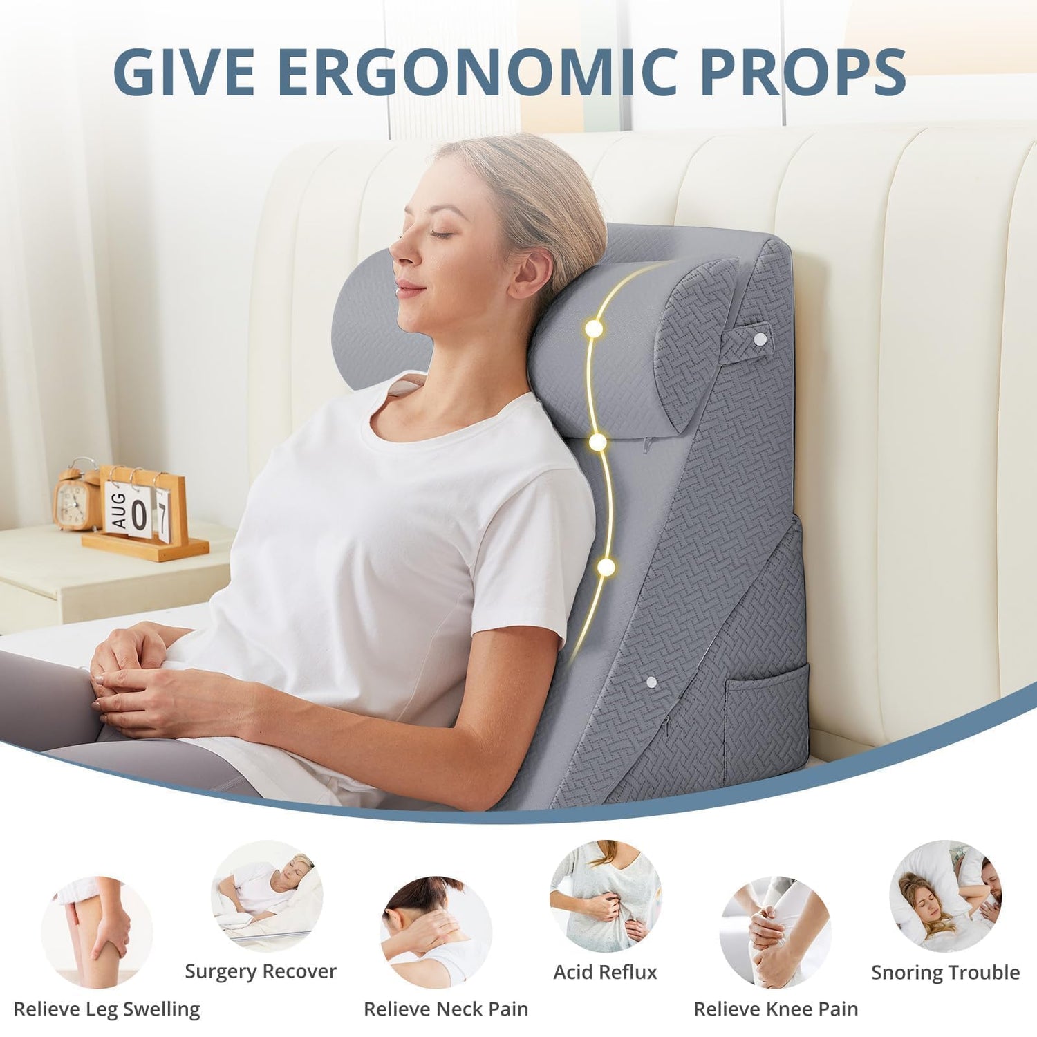 - 10-in-1 Design: The wedge pillow boasts a 10-in-1 design with adjustable heights to support your body in all positions. The bed wedge pillow also comes with a detachable bolster pillow for extra support wherever you need it