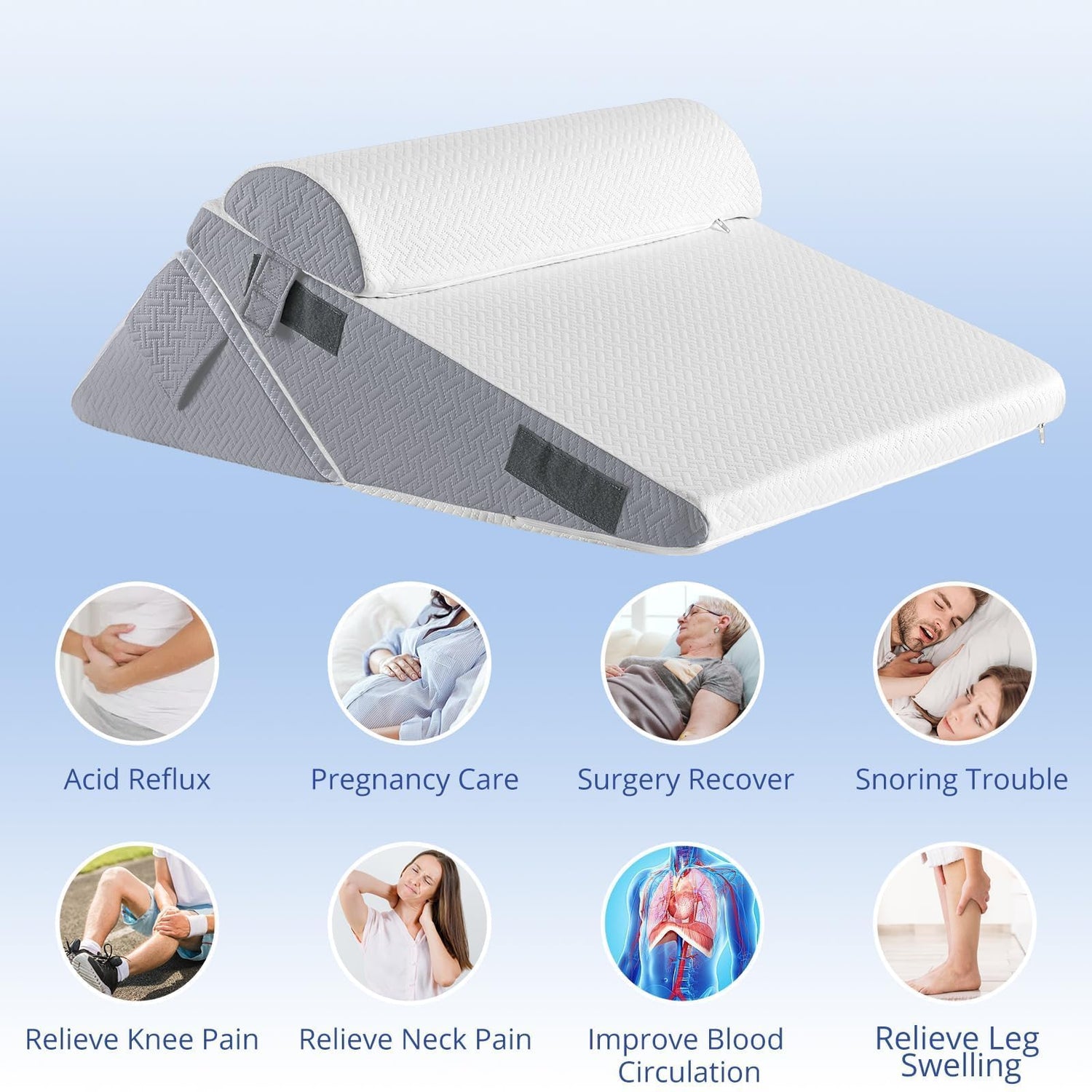 - Health Benefit: Multifunctional wedge pillow helps GERD, heartburn, snoring, and back pain. Elevating your upper body promotes spinal alignment, improves circulation, and reduces discomfort, helps post-surgery recovery and acid reflux