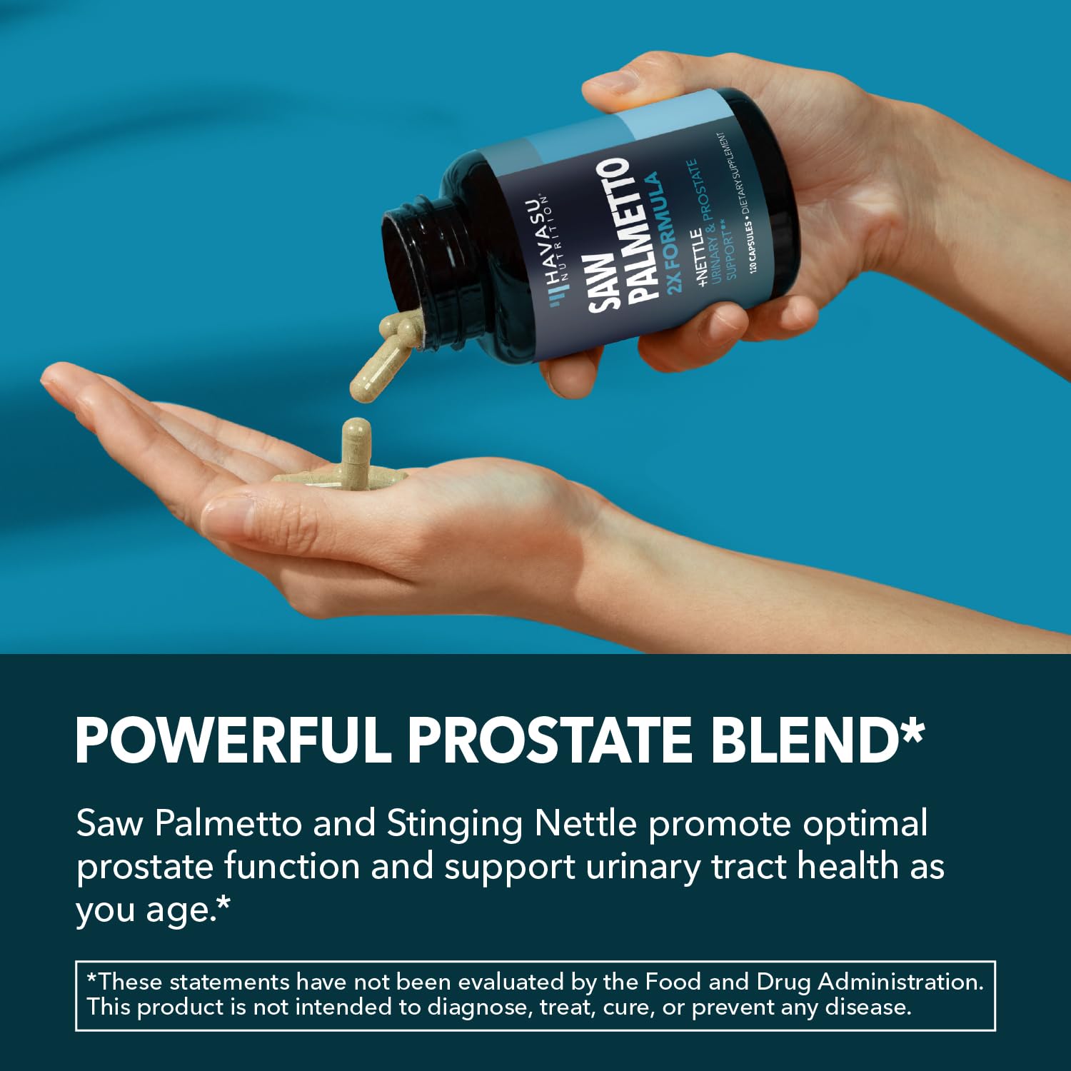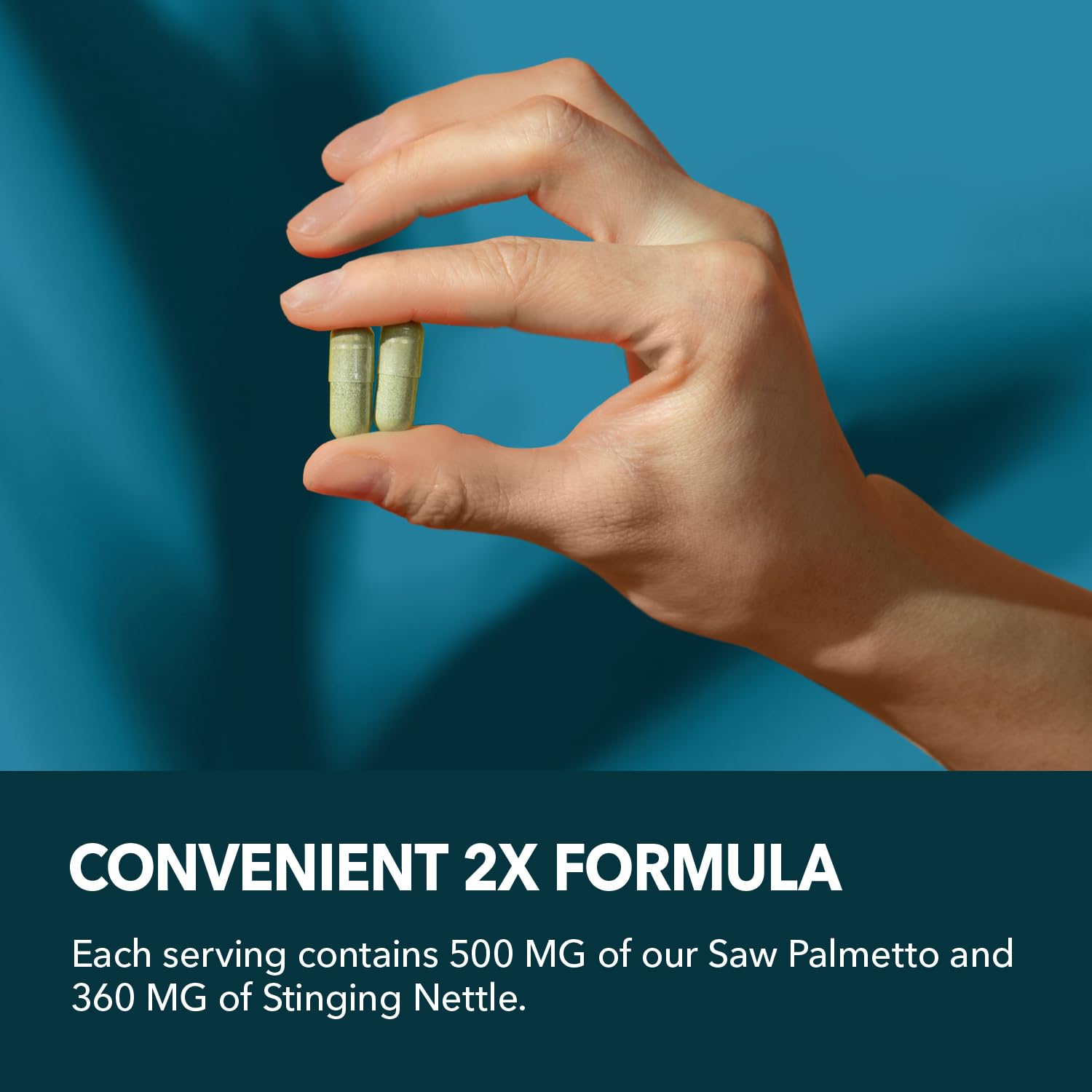 Saw Palmetto with Stinging Nettle Capsules - 2X Prostate Support Supplement for Men’s Health - 120 Count - DHT Blocker for Urinary Tract Function and Hair - Vegan, Non-GMO - 2 Month Supply