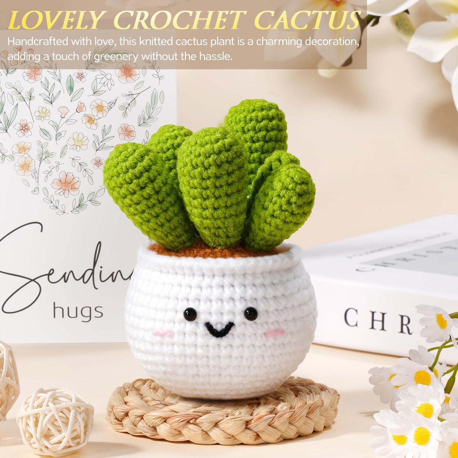 - POSITIVE CROCHET CACTUS: The exquisite handmade crochet cactus (2.8''Lx4.5''H) in our Inspirational Gifts Motivational Gifts Encouragements Gifts for Women is meticulously knitted from premium wool yarn, soft and comfortable. Its novelty look, unique design and lovely smiling face adds a touch of whimsy and creates positive atmosphere, making it ideal for living rooms, bedrooms, offices, classrooms, desks, etc. A positive sending hug gifts cheer up gifts to uplift her mood and brighten her days