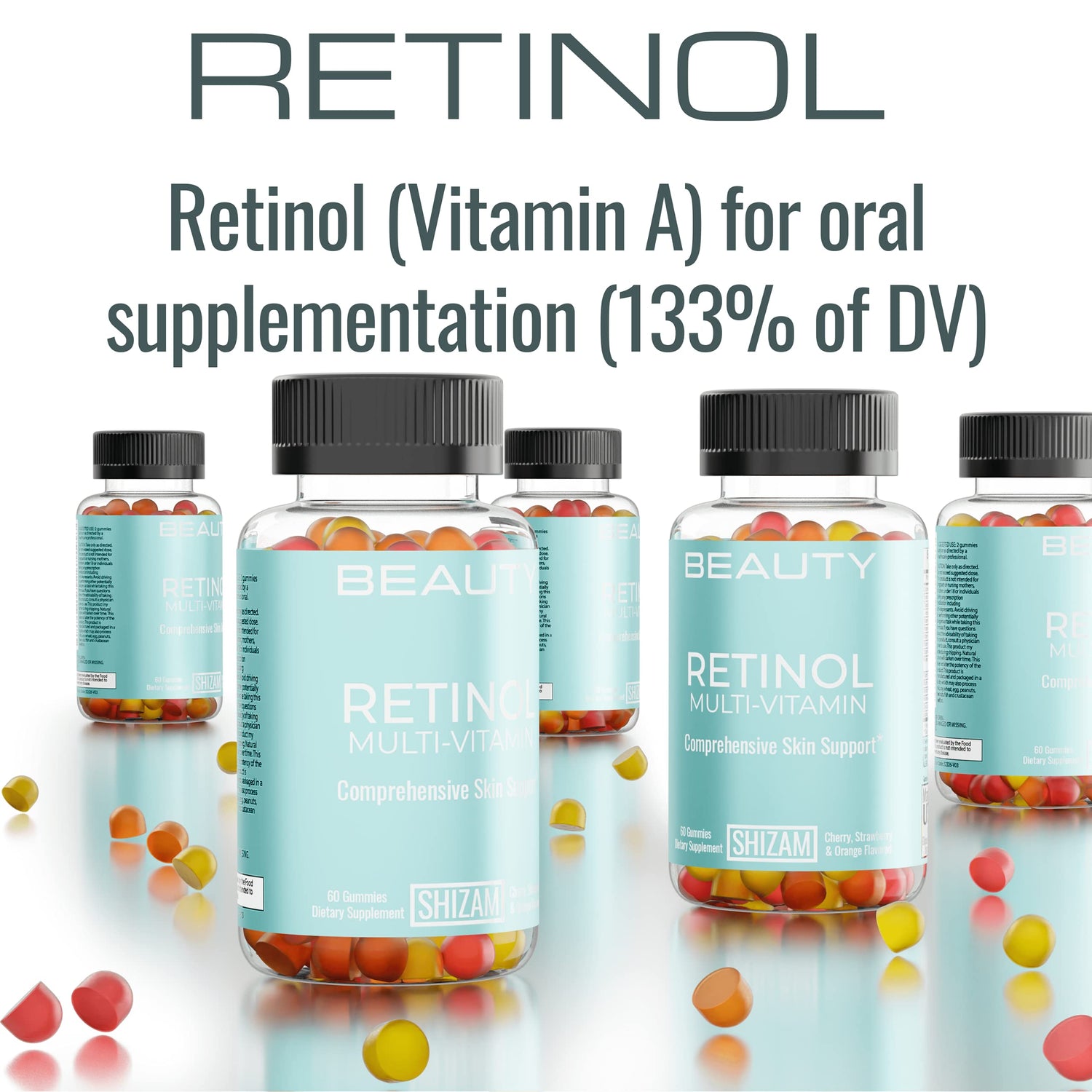 - Introducing SHIZAM's Retinol Vitamin A Gummies - your Gummy Vitamin and Supplement solution. Experience clear Complexion & Glowing Skin like never before. This Anti-Aging Multi-Vitamin is not just for women but anyone yearning for that youthful boost. A powerful Collagen Booster, these gummies bid goodbye to traditional Pill, Pills, Capsule, Capsules, and other Supplements. With SHIZAM, empower your skin health with every gummy bite, revealing your inner radiance!