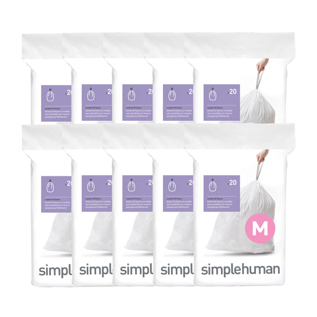 simplehuman Code M 200 Count, Dispenser Pack Custom Fit Liners, Drawstring Trash Bags, 45 Liter / 11.9 Gallon, White