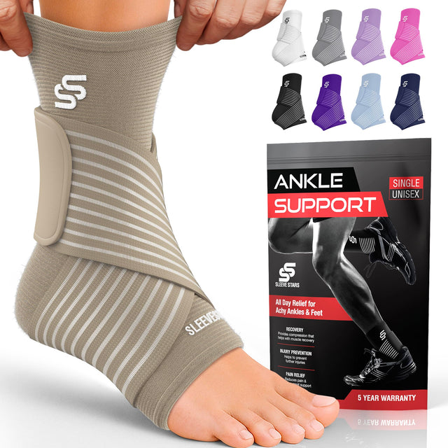 Sleeve Stars Ankle Brace for Women & Men, Ankle Wrap for Sprain, Compression Sleeve for Plantar Fasciitis Relief, Easy Customizable Support: w/ Removable Strap (Pair/M:10"-12"/Beige)