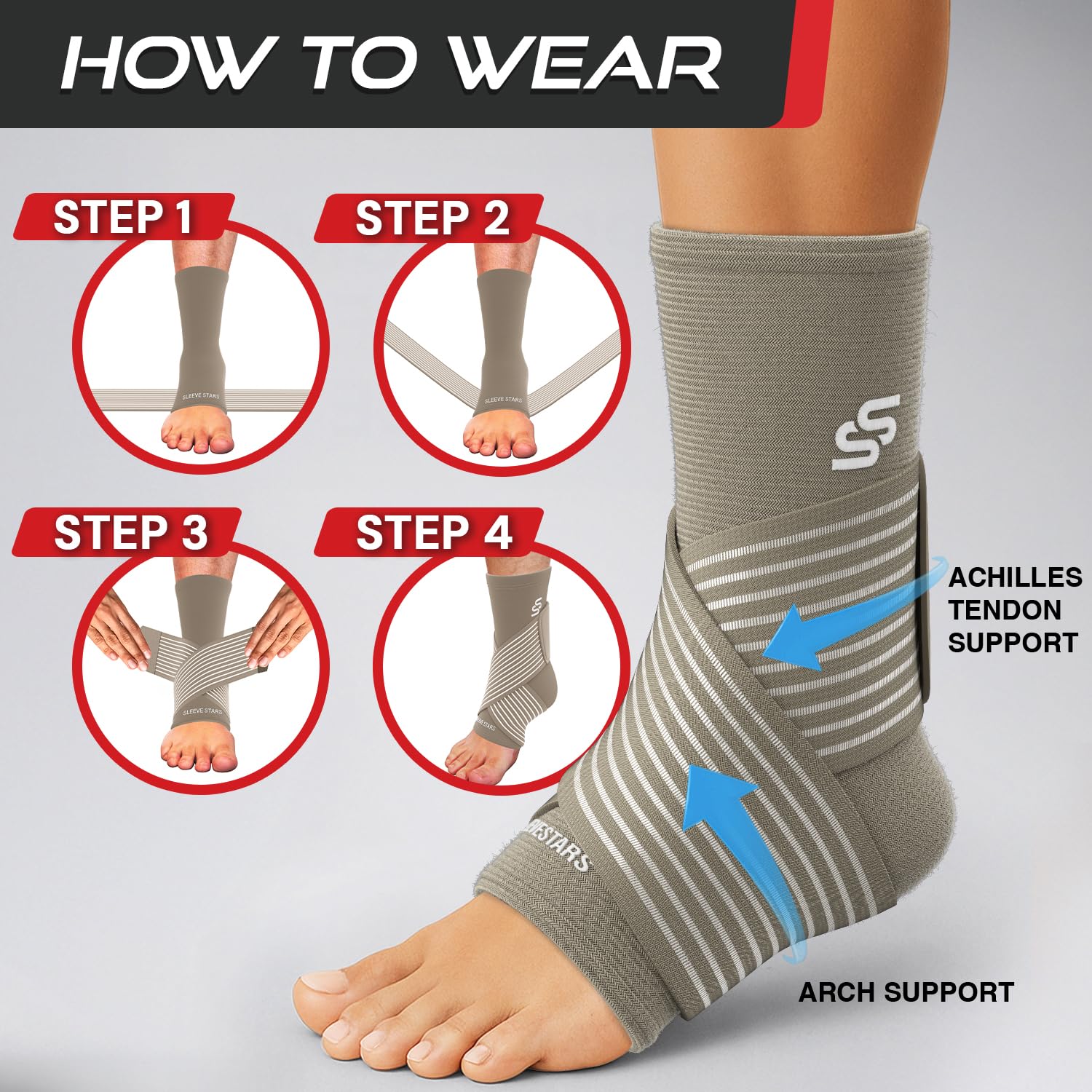- ✅ Great ankle compression: Whether recovering, working, or playing sports, this ankle stabilizer brace for women comfortably supports your feet with targeted and adjustable compression to help increase blood flow. Experience achilles tendonitis brace relief with Sleeve Stars now!