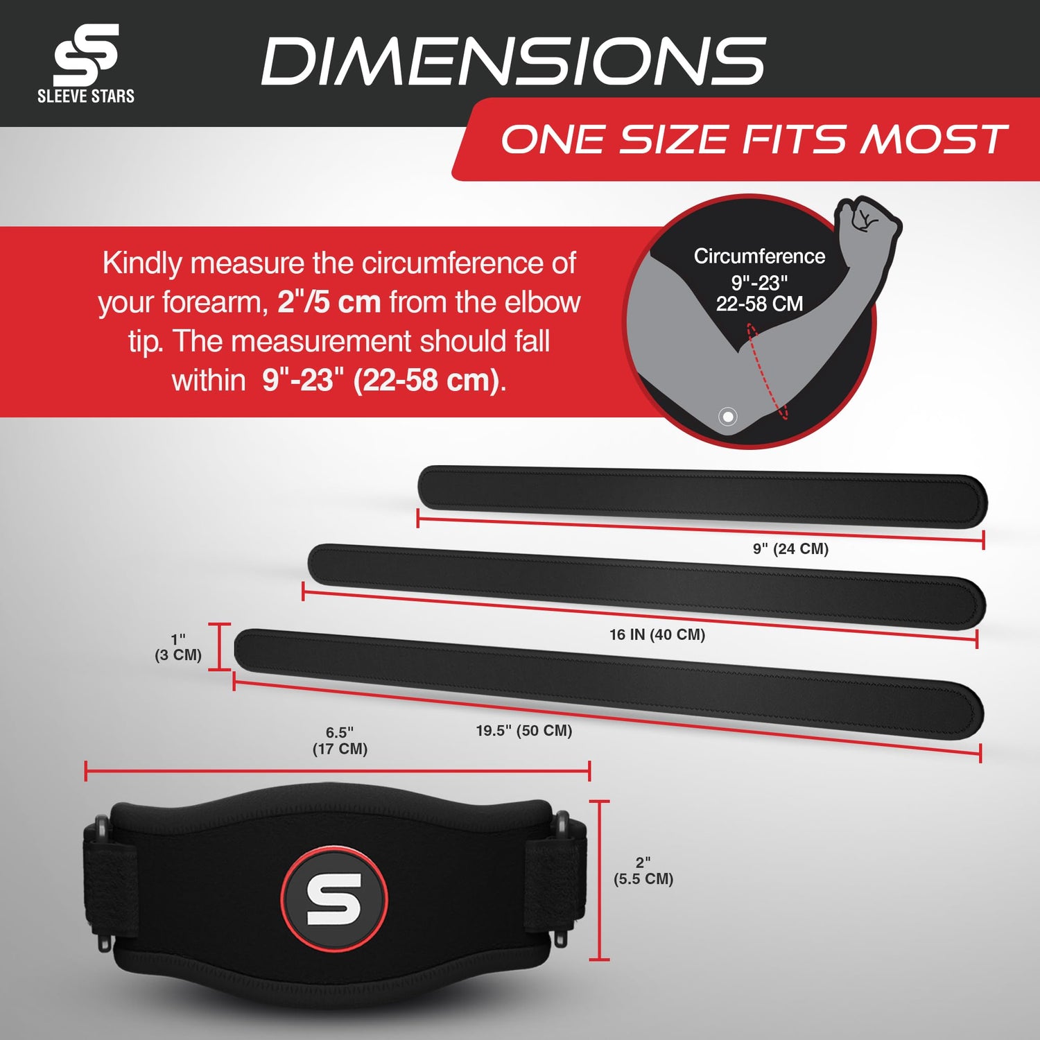 Sleeve Stars Tennis Elbow Brace for Women - Adjustable Tennis Elbow Strap, Golfers Elbow Brace for Men, Counterforce Brace for Tennis Elbow for Tendonitis Relief, Fits 9"-23" (Pair/Black)