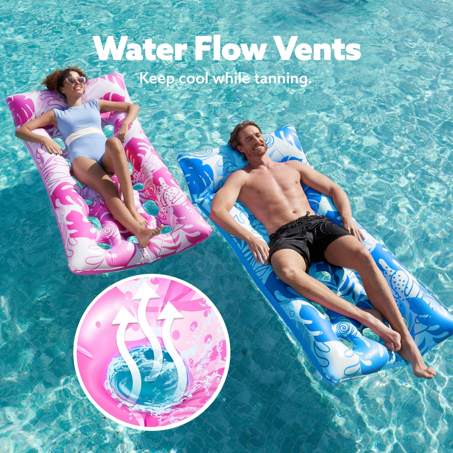 - WATER FLOW VENTS: Stay cool and refreshed with strategically placed water flow vents, ensuring a constant stream of water for a soothing and enjoyable time in the pool.