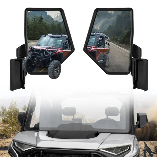 - Side mirrors for Ranger XD 1500 are flexible and adjustable, you can find the most suitable angle by adjusting breakaway hinge mounts; when encounter obstacles such as branches, they can be folded inward, avoiding crushing, you can also get a smooth passage even when riding on narrow trails
