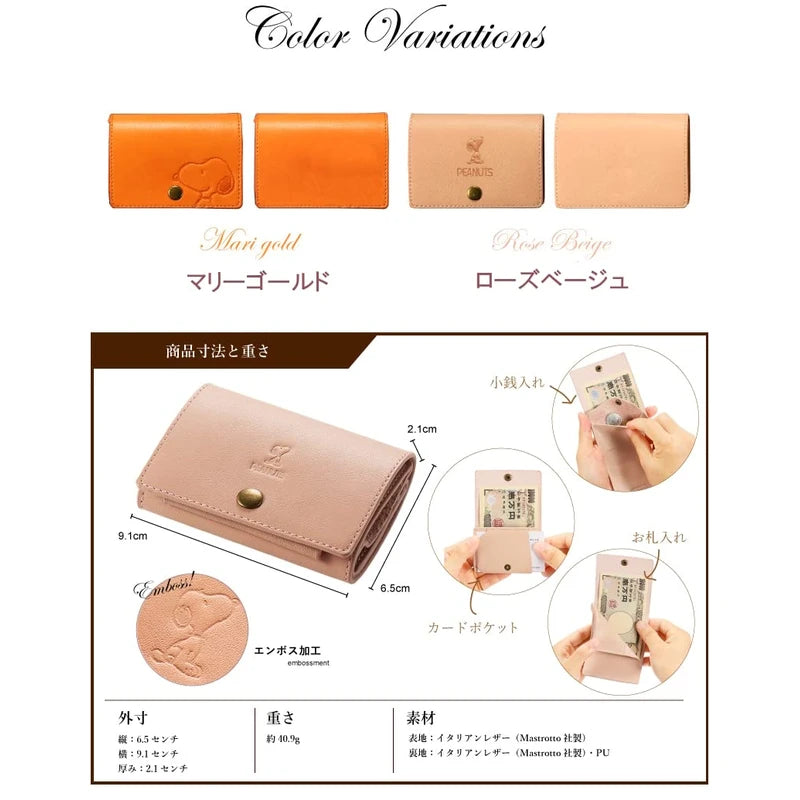 Snoopy Italian Leather Genuine Leather Mini Wallet with Card Pocket and Bill Compartment, gold