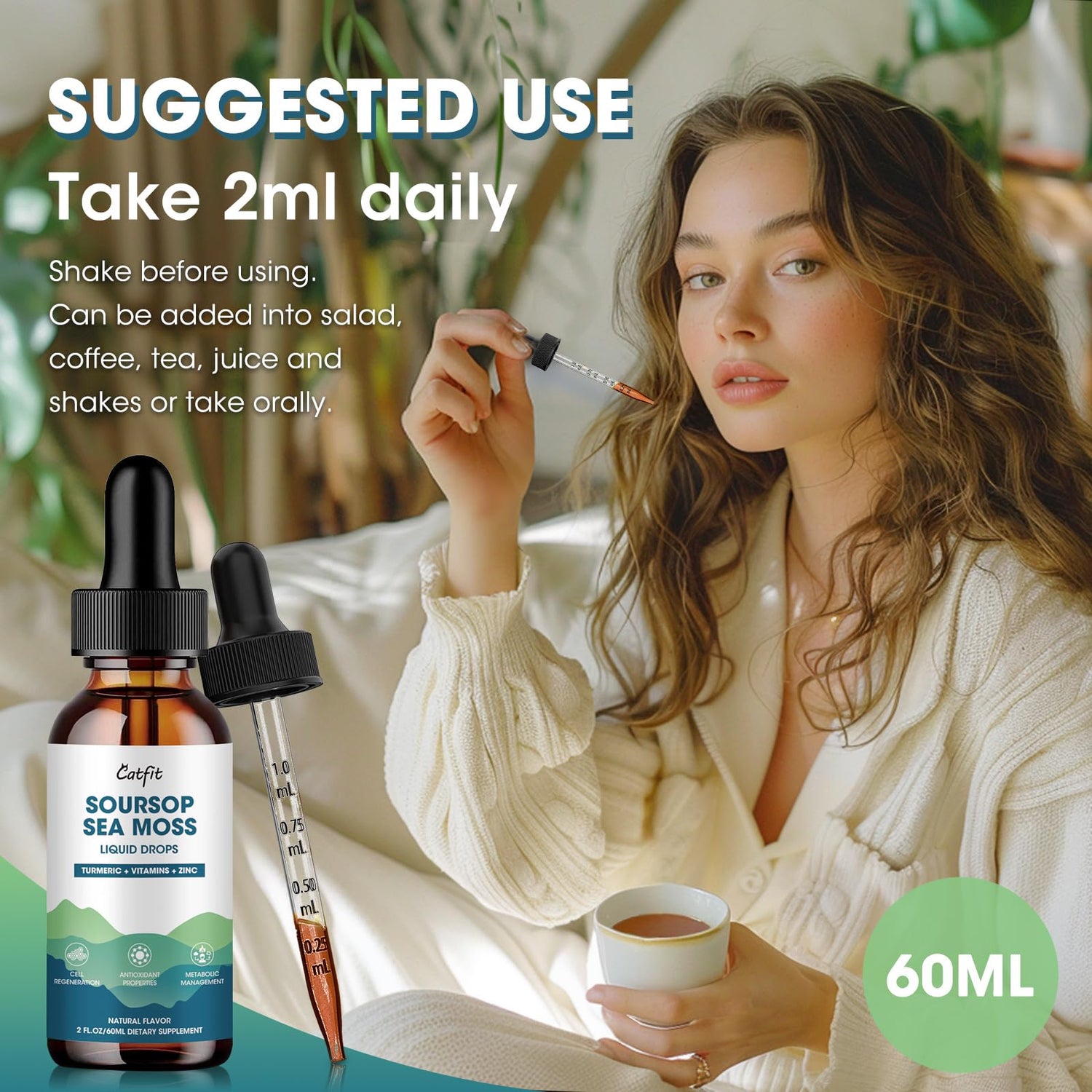 - ✅ Plant-Based Formula for Daily Wellness: Catfit’s liquid blend includes soursop leaf extract, sea moss, turmeric, and essential vitamins to support energy, immune function, and overall balance. Perfect for daily use in any lifestyle.