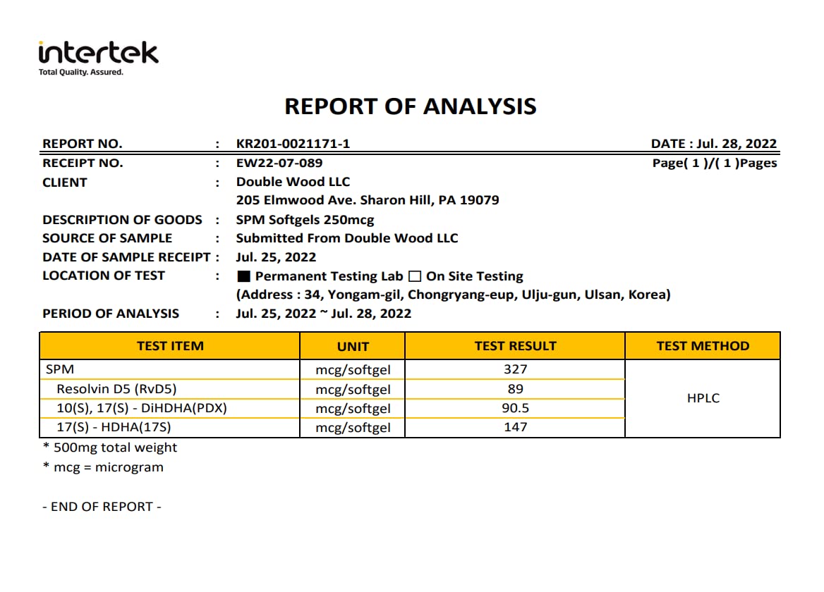 - 250MCG OF SPECIALIZED PRO-RESOLVING MEDIATORS: No other brands contain 250mcg of Specialized Pro Resolving Mediators