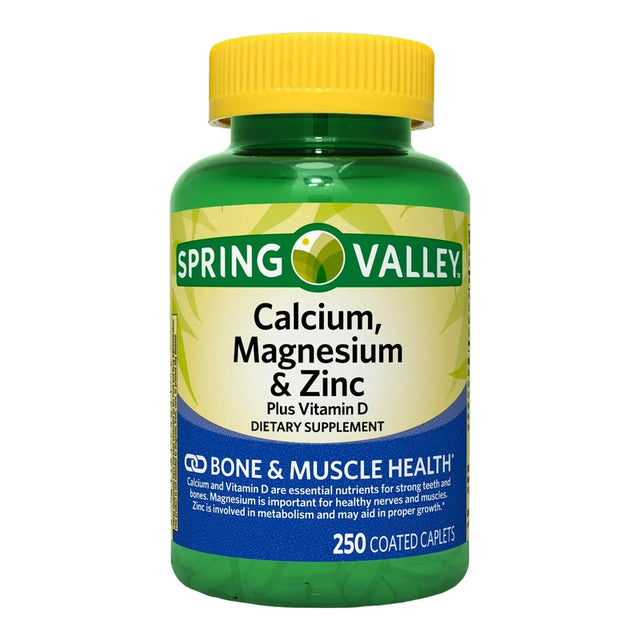 - Spring Valley Calcium, Magnesium & Zinc Plus Vitamin D3 Coated Caplets, 250 Count