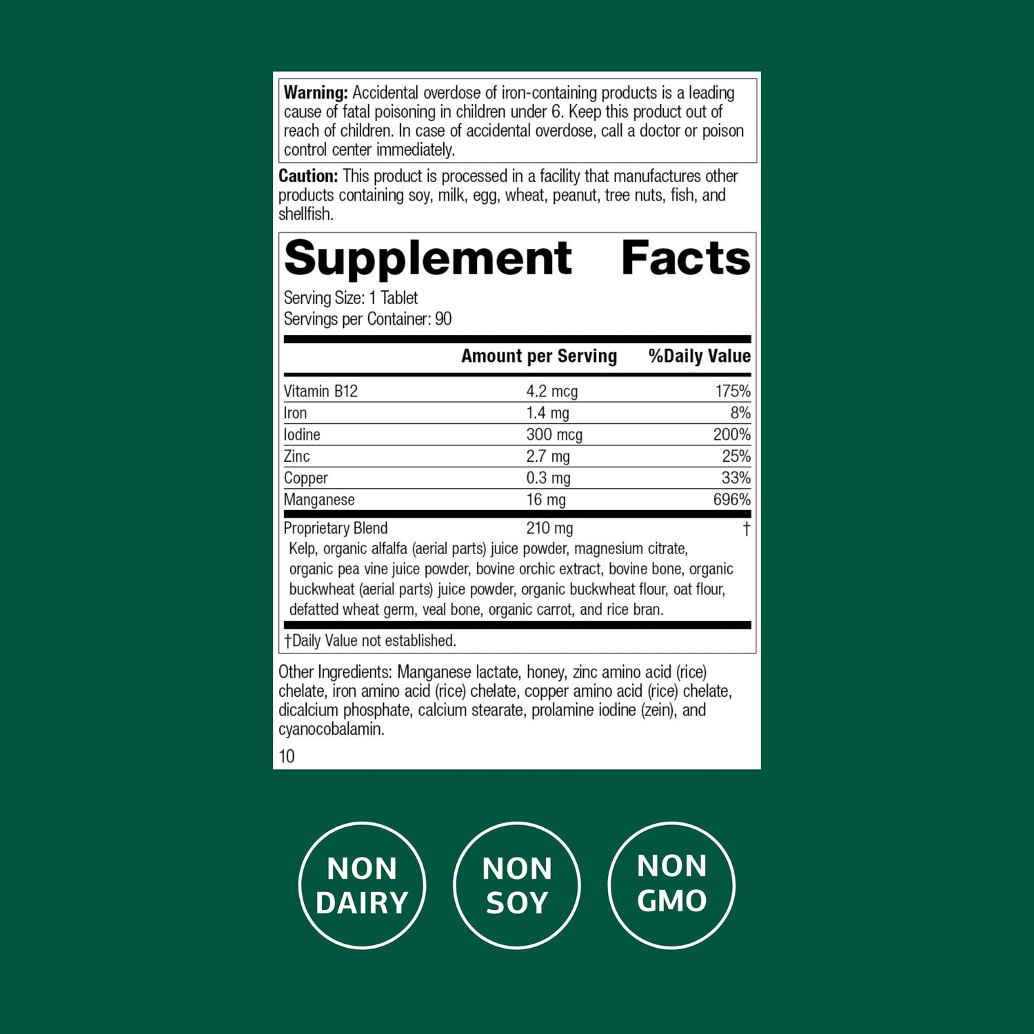 Standard Process Trace Minerals-B12 - Thyroid & Cell Functioning Support with Iodine, Zinc & Copper - Cartilage & Bone Health Aid - Non-Dairy & Non-Soy - 90 Tablets (90 Servings)