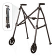 Stander Wonder Walker, Lightweight Foldable Space Saver Rolling Walker for Adults, Seniors, and Elderly, Compact Travel Walker with 6-inch Wheels and Ski Glides for Mobility Support, Black Walnut