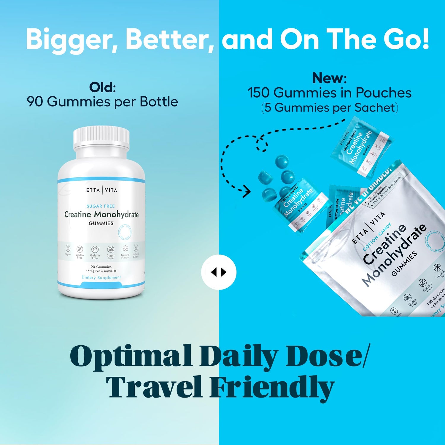 - Potent Formula & Improved Bioavailability - Etta Vita’s unique formula of Creatine Monohydrate is effective, with 1g of Creatine per gummy. The gummies are coated in an MCT Oil, which improves bioavailability and absorption in the body. Creatine helps reduce post-workout muscle fatigue, improve athletic performance, and increase muscle development and growth.