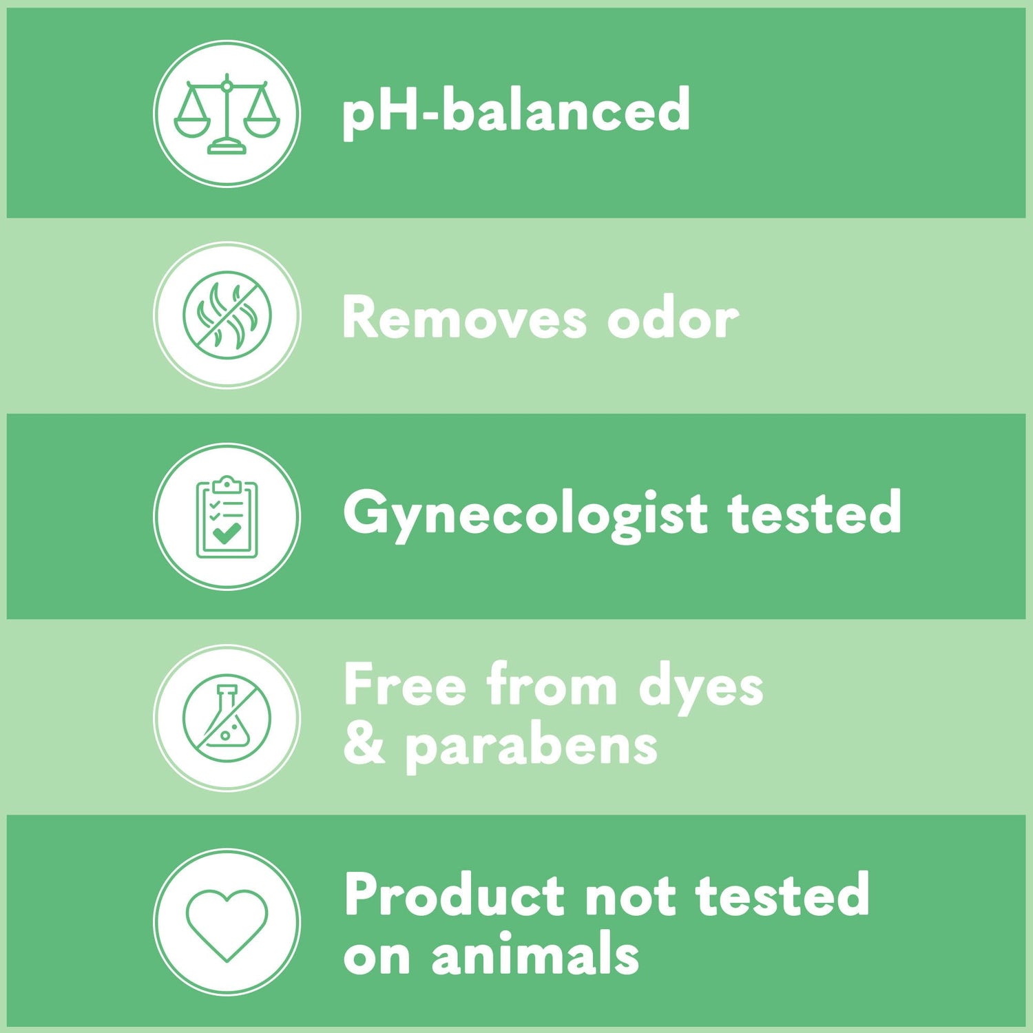 - Uniquely formulated and pH balanced to match the intimate area’s natural chemistry