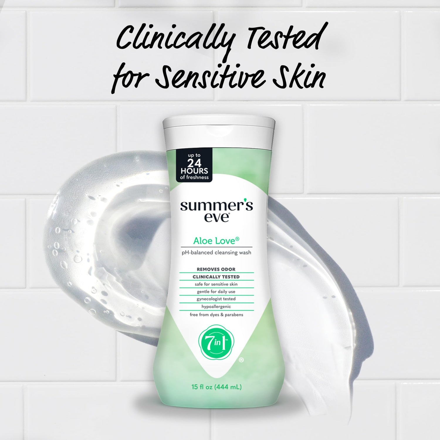 - Summer’s Eve Aloe Love Daily Gentle Feminine Wash removes odor-causing bacteria