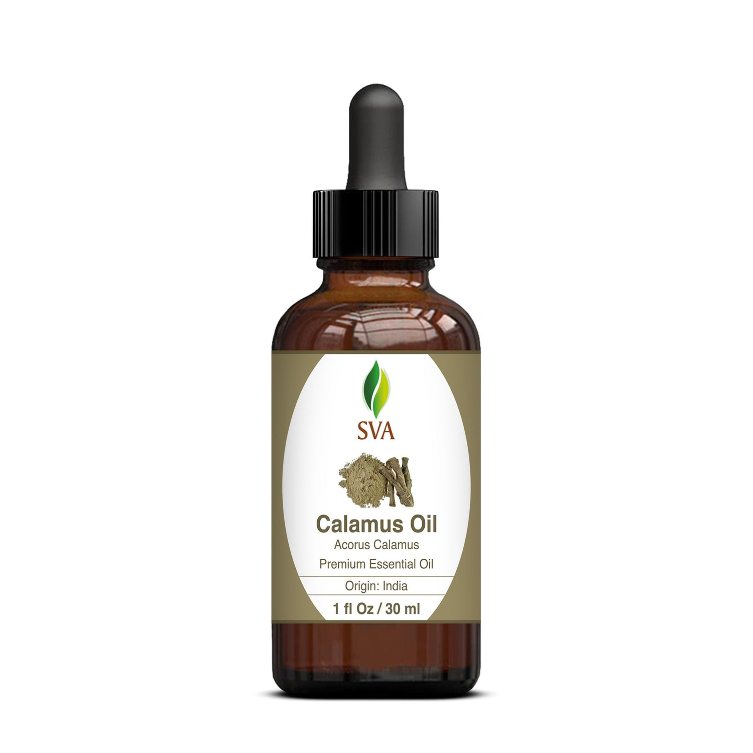 - Premium Quality Calamus Essential Oil: SVA Calamus essential oil 1 Fl Oz is obtained by steam distillation of Calamus plant stems. Our Calamus essential oil is free of preservatives and comes with a dropper for easy application. It is not tested on Animals. We care for you