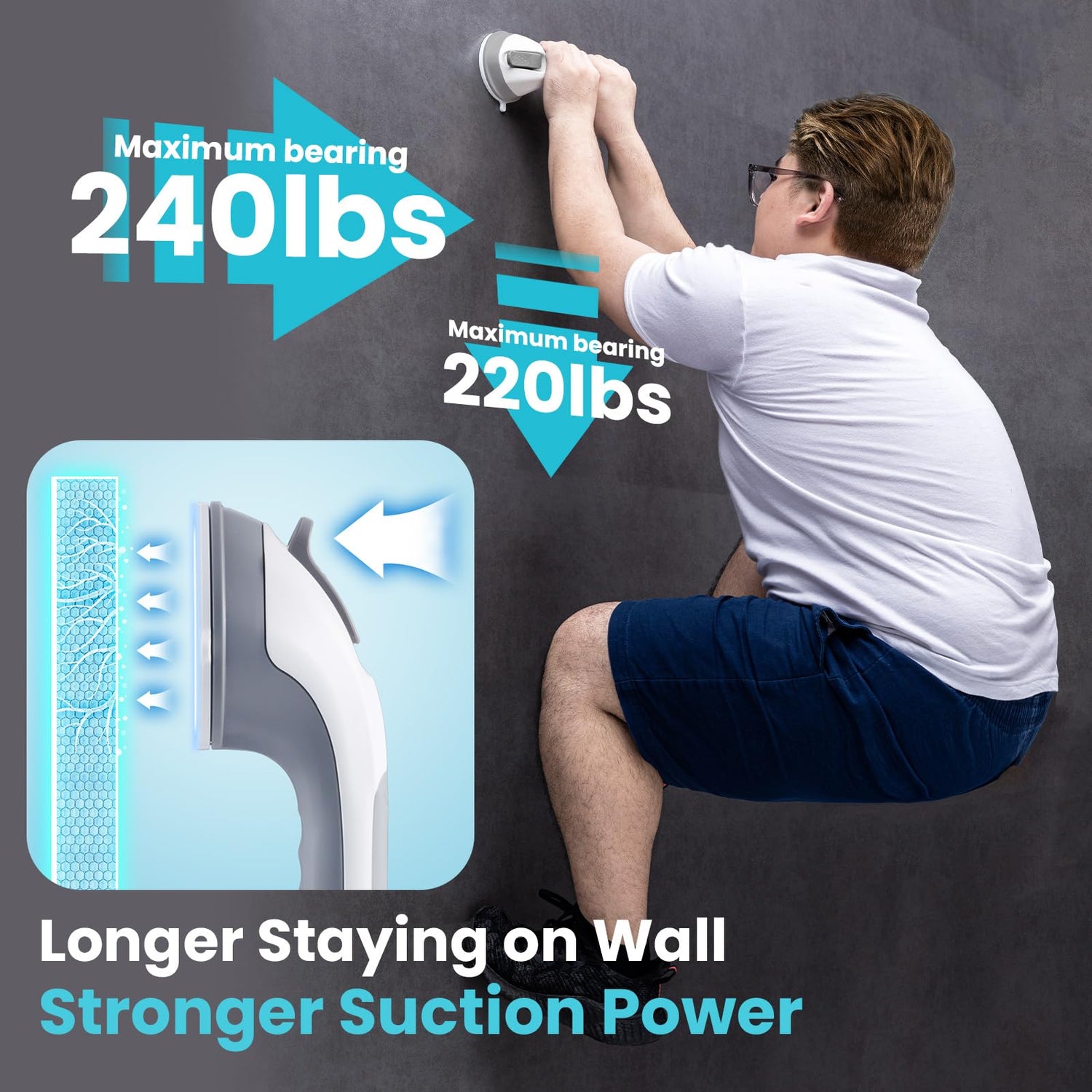 - Easy for Installation: Each suction cup shower handle equips 2 Strong suction cups with locking latches to provide stable protection. The bathtub hand rail ONLY needs to pull down the latches with 5 seconds and the installation is done, quickly and effortlessly! NO drilling, NO screws, NO glue and NO tools are required, fully removable, reusable and causing no damage to your wall