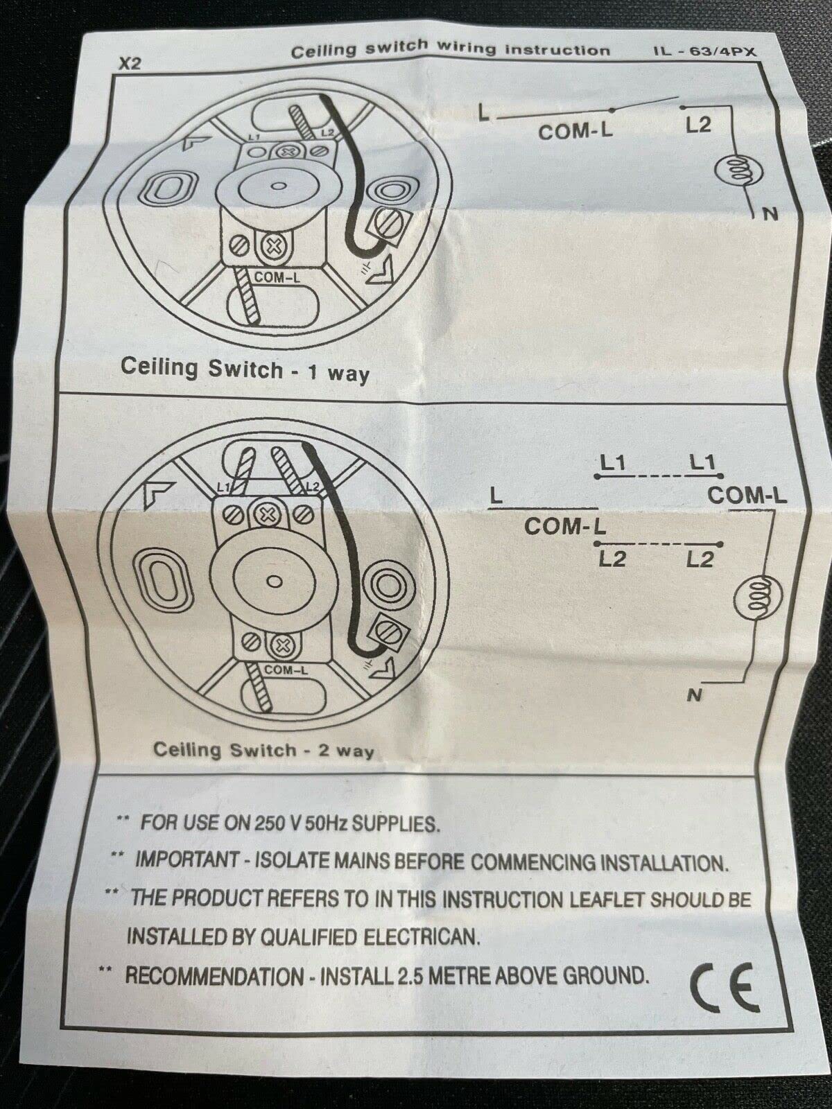Details: Matt Black Bathroom Light Pull Switch Black Cord Modern style Toggle 6 Amp 2-Way Instructions included
