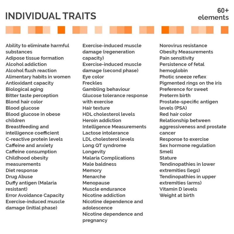 - You will be able to know your compatibility with more than 150 medicines, your predisposition to more than 180 complex and hereditary diseases, discover your ancestors and origins and connect with genetic relatives and family.