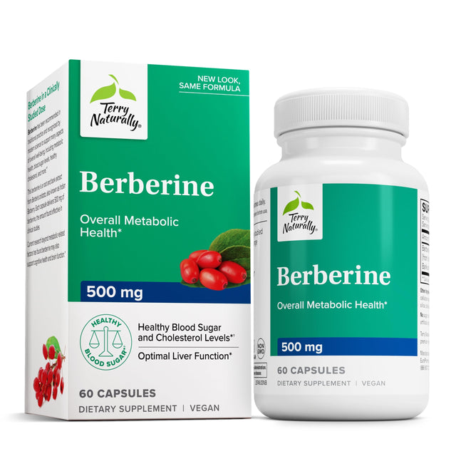 Terry Naturally Berberine - Dietary Supplement with Berberine - Liver Health Supplement for Metabolism Support - Joint Health Support for Men & Women - 60 Capsules