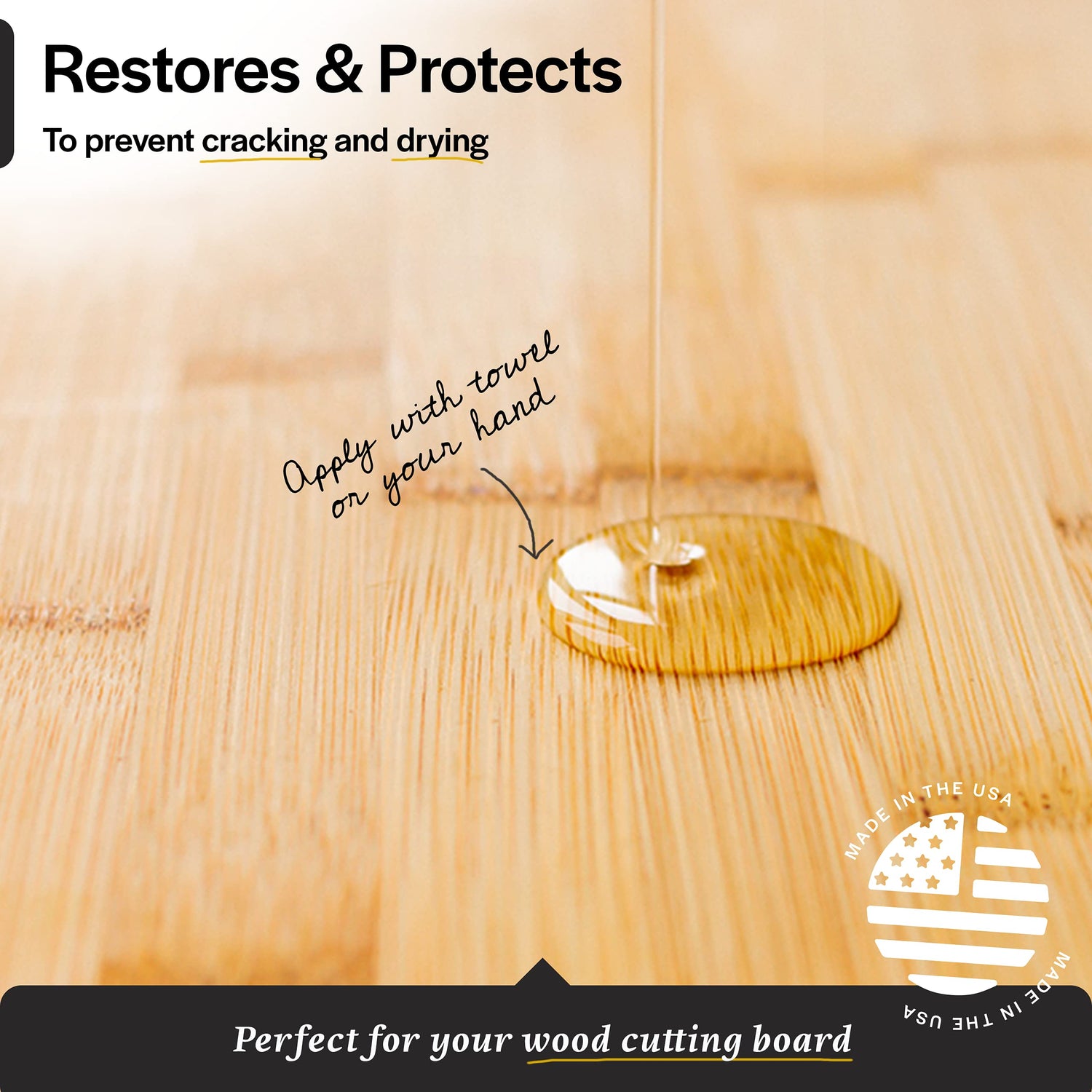 - PROTECTION - Use this mineral oil for cutting board restoration and protection to prevent cracking and drying. It also magically restores your knives, kitchen appliances, and more!