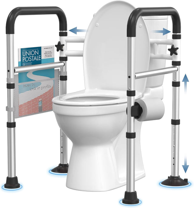 Toilet Safety Rails for Seniors (350 LBS), Adjustable Toilet Safety Frame for Elderly and Disabled, FSA HSA Eligible Foldable Handicap Toilet Assistance Rail Fits Most Toilets, Matte Black