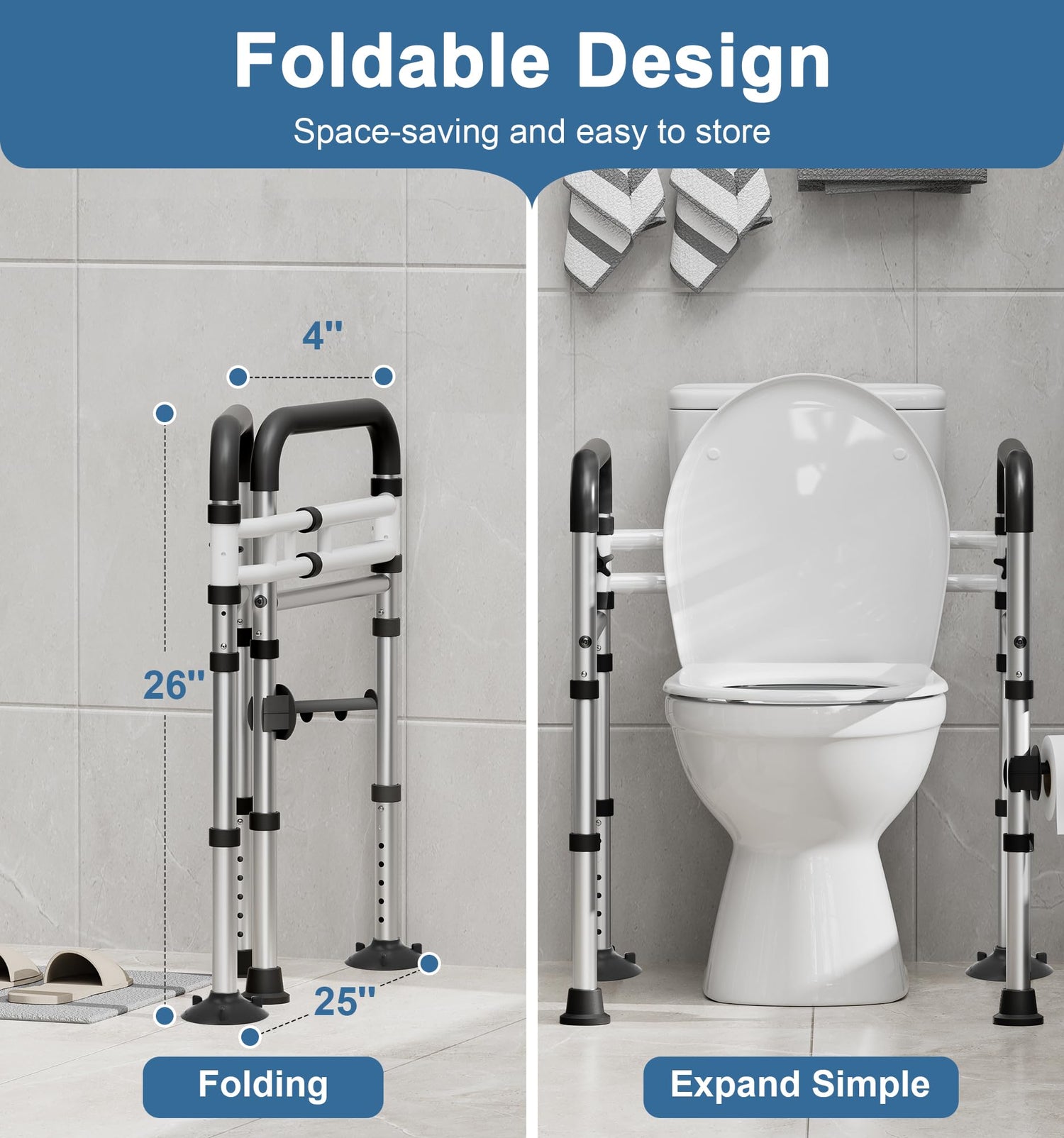 - 【Foldable】Our toilet safety frame boasts a space-saving design that can be effortlessly folded away when not in use, maximizing convenience and functionality for easy storage and portability during travel