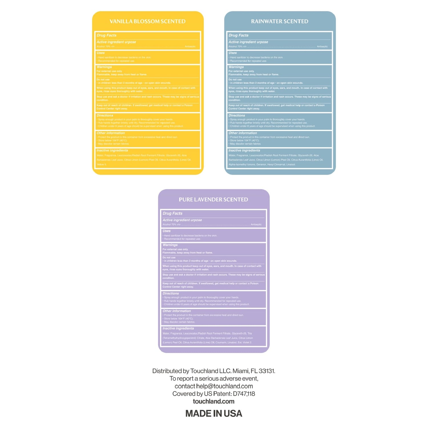 - POWER MIST BLOSSOM TRIO SET: Features 3 travel-friendly hand sanitizer mists in Pure Lavender, Vanilla Blossom, and Rainwater scents. This skincare-forward hand sanitizer leaves hands sanitized, hydrated, and delicately scented.