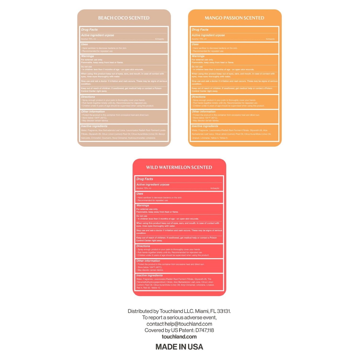 - POWER MIST TROPICAL TRIO SET: Features 3 travel-friendly hand sanitizer mists in Mango Passion, Beach Coco and Wild Watermelon scents. This skincare-forward hand sanitizer leaves hands sanitized, hydrated, and delicately scented.
