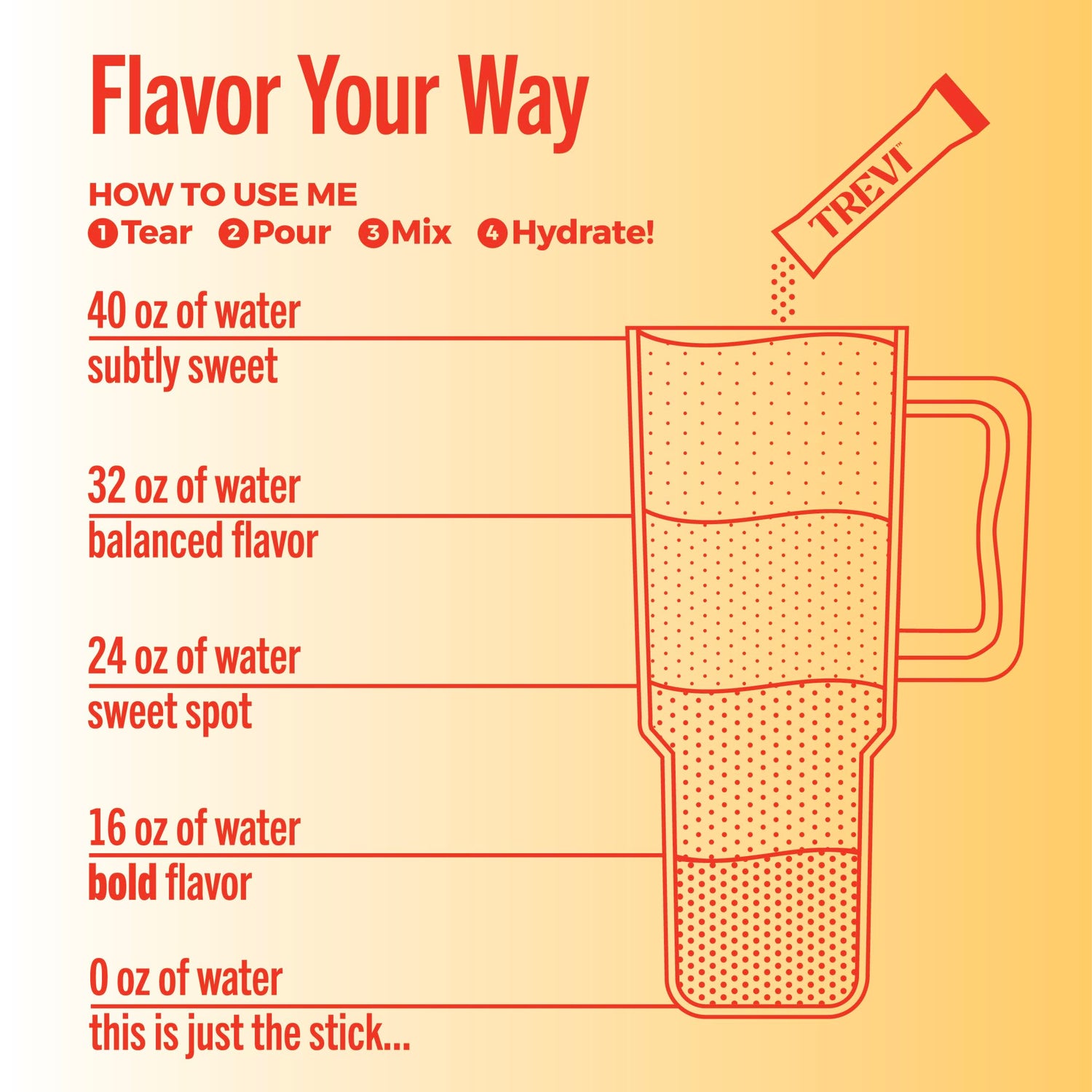 • One Stick; Many Ways to Fight Boring Water: One stick in 16oz of water maximzies flavor while 32oz of water creates a subtle flavor you are sure to love.
