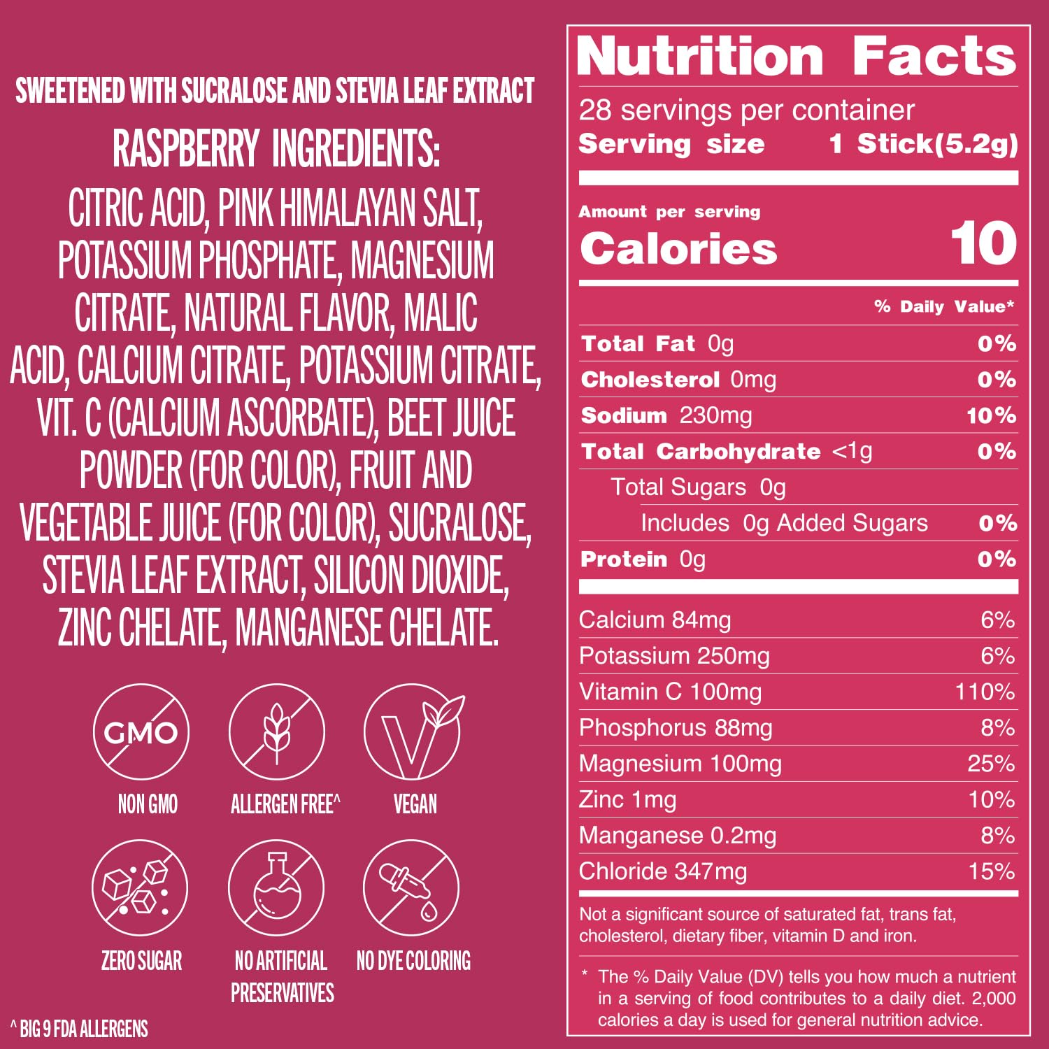 • All the Good Stuff and Zero Sugar: Each stick is filled with 3x electrolytes vs traditional sports drinks - Sodium, Potassium, Magnesium, Vitamin C, Pink Himalayan Salt - all while being Sugar Free, Non-GMO, Allergen Free, Vegan, with No Artificial Preservatives and No Artificial Coloring