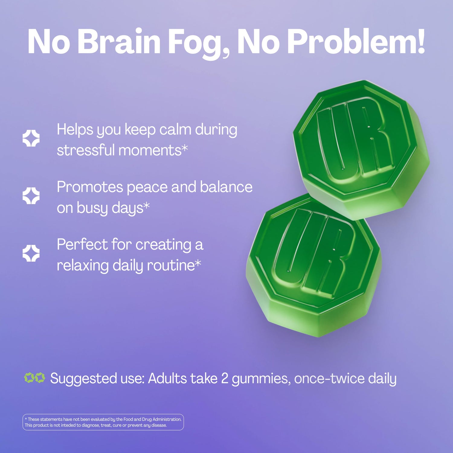 URVI® Neuro Support Supplement Gummies – 500 mg Glycine, 150 mg L-Theanine (high Potency), Vitamins B1 & B6 for Calm Focus, Relaxation, & Sleep – Sugar-Free – Green Tea & Apple – 60 Count