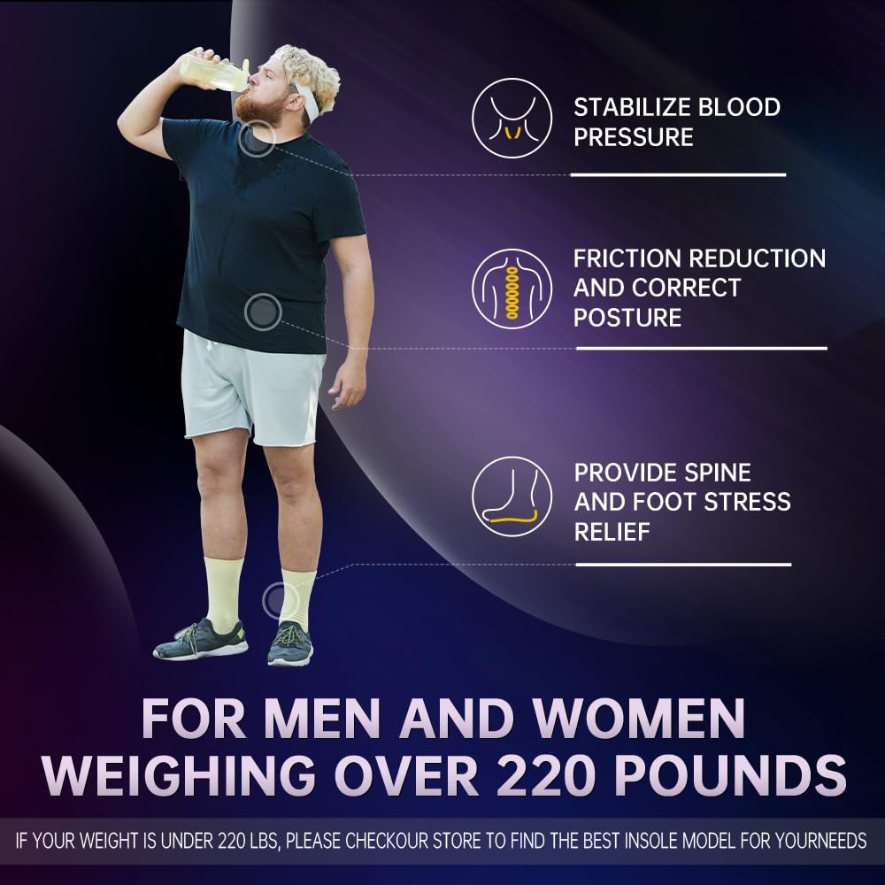 - 【220 lbs+Heavy Duty Support Insoles】:Men's and women's orthopedic insoles, specially designed for heavier people, provide super high arch support and shock-absorbing technology to relieve foot and leg fatigue, distribute weight and reduce friction with every step impact, providing comprehensive foot support.