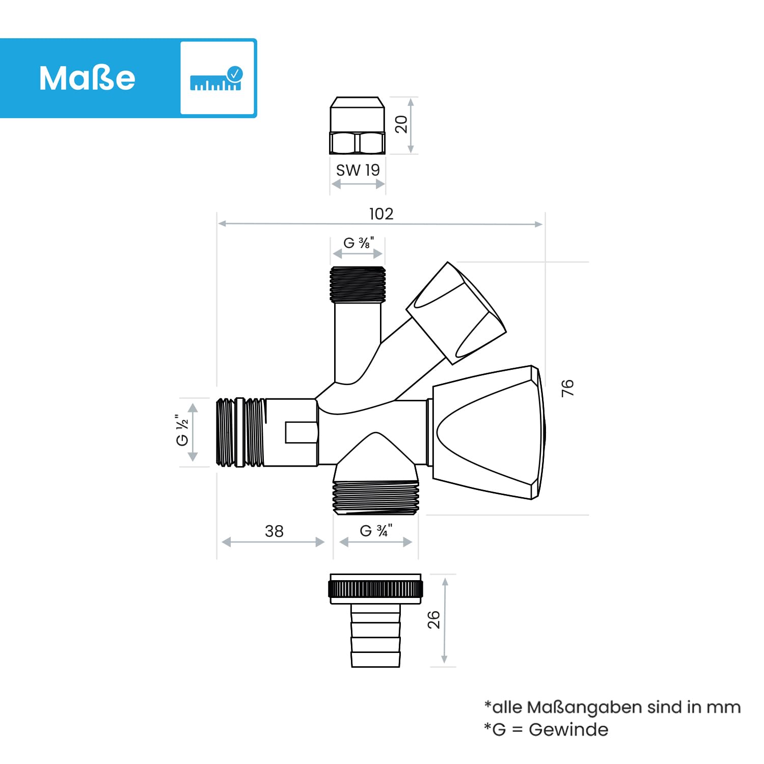 Valvola Angolare Combinata Universale Bächlein Autosigillante, Valvola Angolare Combinata per Tubi dell'Acqua Fredda e Calda con un'Ampia Gamma di Opzioni di Collegamento, Valvola Angolare