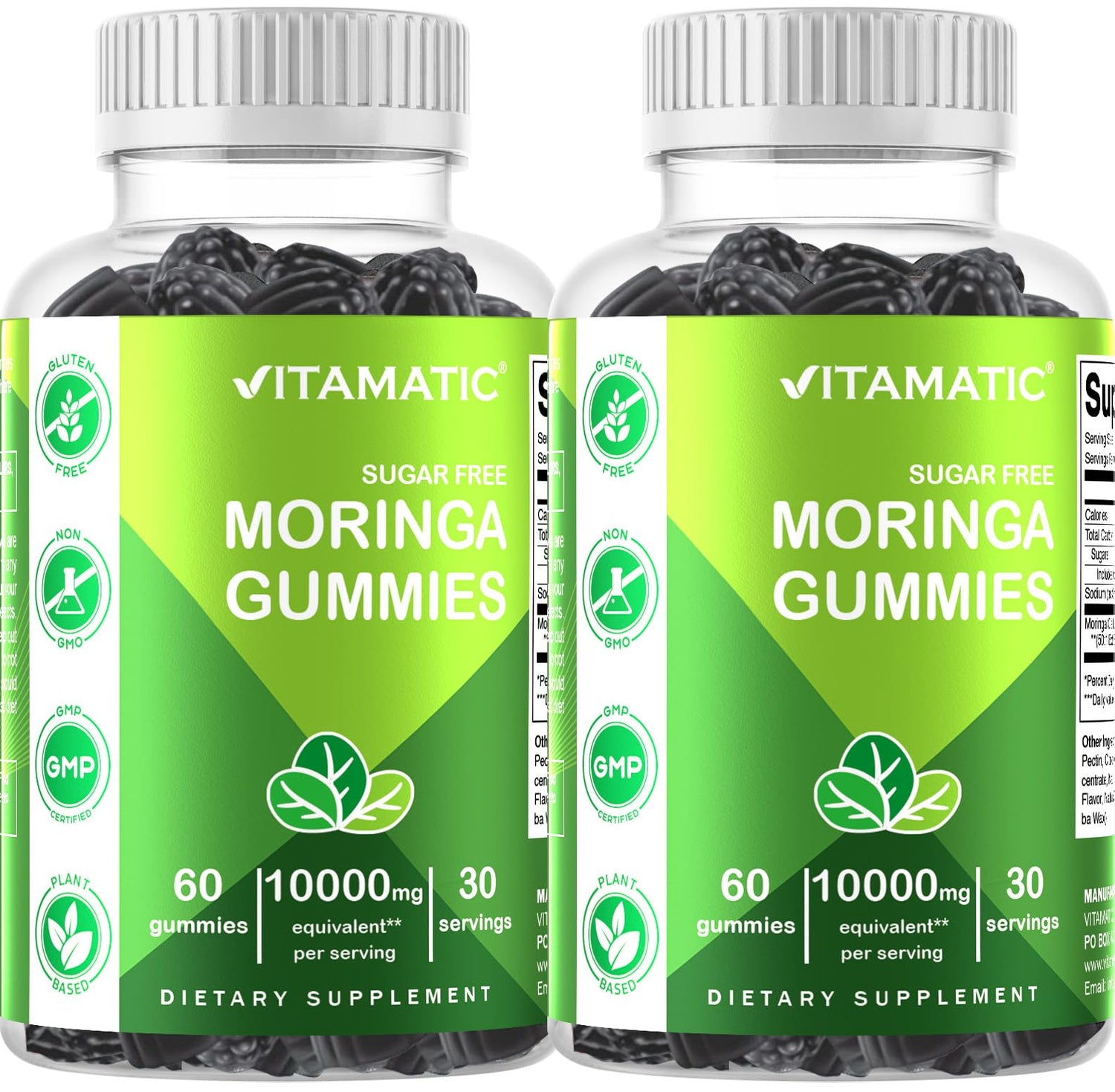 Details: 2 Packs Vitamatic Sugar Free Moringa Gummies- 10000 mg Equivalent Per Serving (from 50:1 Extract 200 mg) - Complete Green Superfood 20X Extract - 60 Pectin Based Gummies